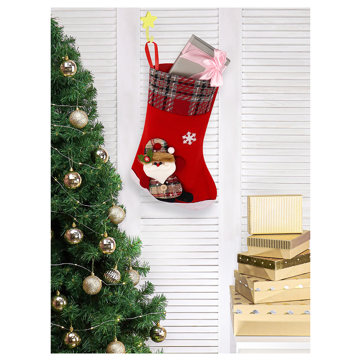 Носок для подарков — яркое интерьерное украшение и способ создания праздничного настроения. В него можно сложить подарки для друзей и близких и оставить их под новогодней ёлкой в качестве сюрприза. Размер: 17х34 см.