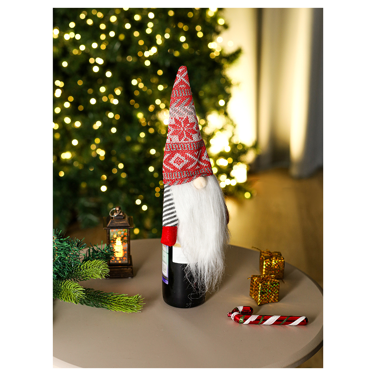 Чехол на бутылку – великолепный способ придать напитку праздничное настроение и сделать оригинальный тематический подарок для семьи, мужа, коллег или друзей. Украшение легко крепится на бутылку и совершенно идеально подходит для новогодних праздников, вечеринок или в качестве подарка. Материал: текстиль. Размер: 36х13 см. Упаковка: пакет.