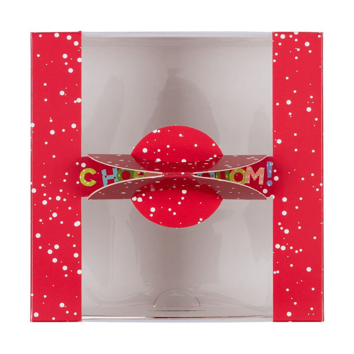 Картонная коробка с окном и небольшими ручками идеально подходит для переноски и презентации бенто тортов, мини-тортов, продуктов. Красивый новогодний дизайн.