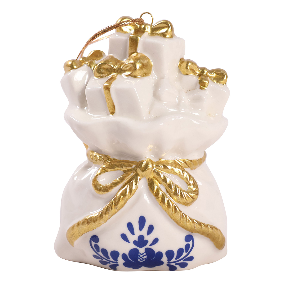 Перед вами эксклюзивная елочная игрушка! Этот фарфоровый мешок с подарками – настоящее произведение искусства. Его уникальный дизайн и безупречное качество исполнения сделают его желанным украшением вашей елки и ценным экспонатом вашей коллекции. Размер игрушки: 4,6 х 7,8 х 5,5 см.
