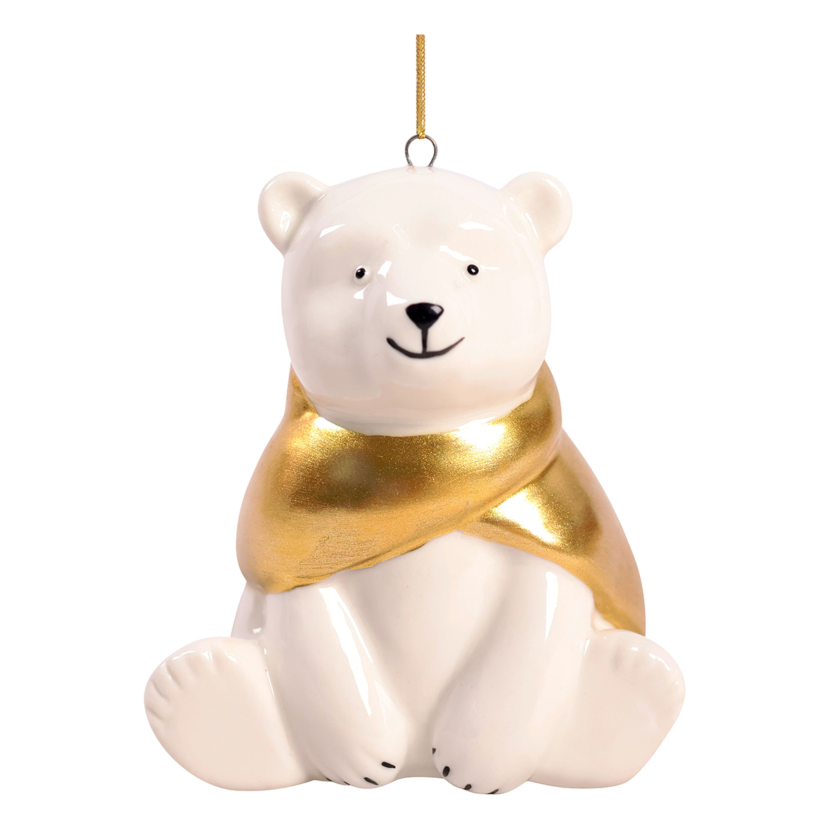 Изысканное сочетание белого и золота. Фарфоровая елочная игрушка, выполненная с потрясающей детализацией. Нежный белый фарфор и тонкие золотые линии, великолепно подчеркивающие форму игрушки, создают ощущение роскоши и утонченности. Каждая деталь продумана до мелочей, что делает эту игрушку настоящим произведением искусства. Размер 6,4 х 9 х 7,4 см.