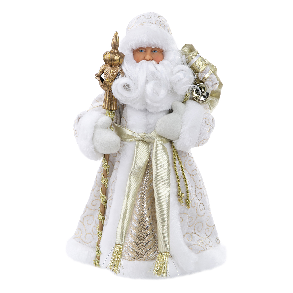Фигурка "Дед Мороз в золотистой шубке" идеально впишется в новогодний интерьер и будет радовать домочадцев и гостей праздника. Фигурка двигается, имеется музыкальное сопровождение. Шубка фигуры выполнена из качественных текстильных материалов, золотое обрамление и белая опушка отлично впишутся в новогоднюю тематику практически любого дома. Фигурка может стоять под елкой, или на тумбочке и дополнять новогодний декор. Сам Дед Мороз выполнен из ПВХ, в комплекте идут батарейки.