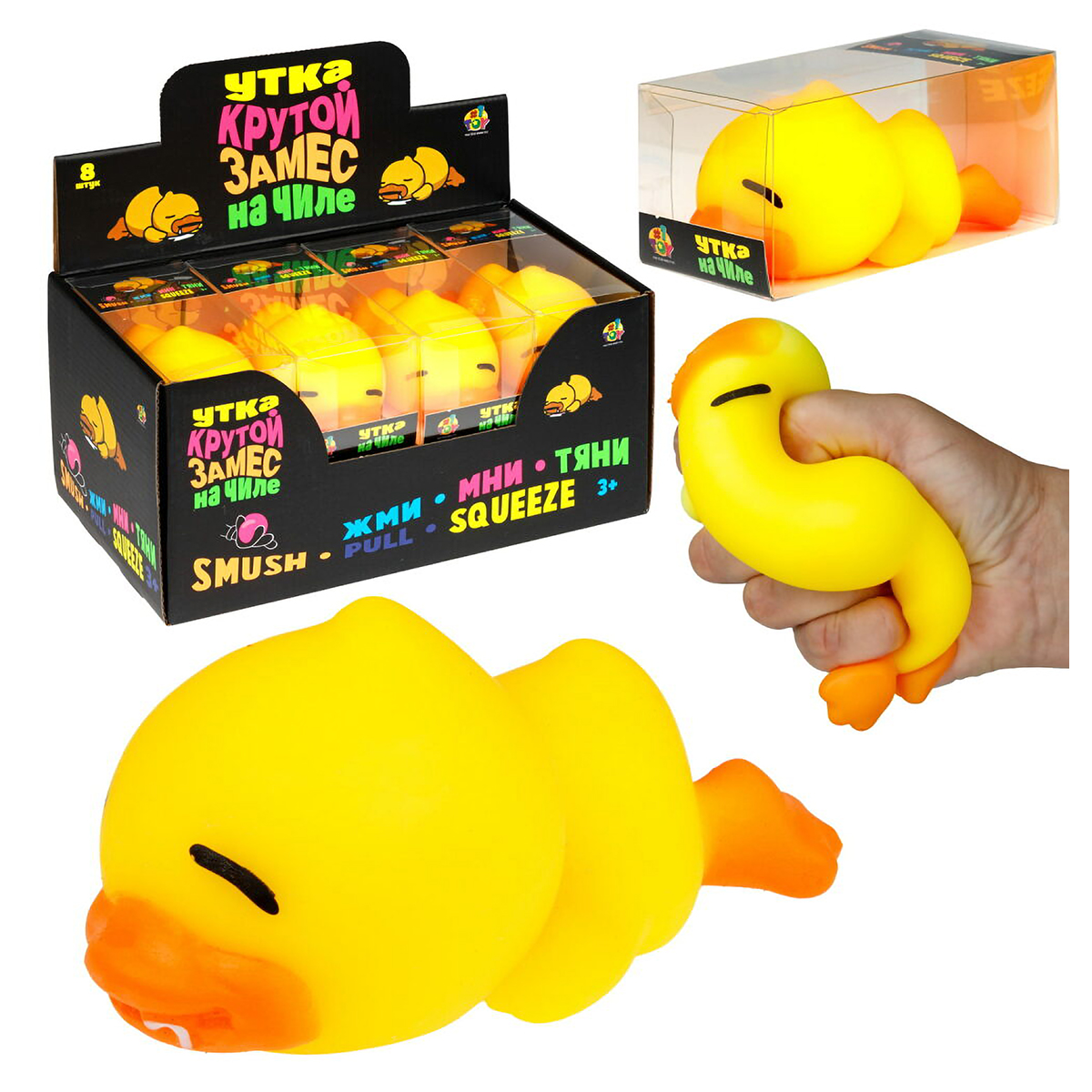 Милая антистресс-игрушка жмяка "Крутой замес" от 1TOY представлена в форме яркой желтой утки. Игрушка способствует развитию мелкой моторики ребенка и поднимает настроение. Уточка выполнена из полимерных материалов, ее можно мять, тянуть и сжимать. Подходит для детей от 3-х лет. Размер: 13х6,5х7,5 см.