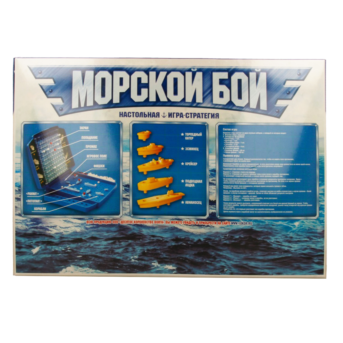 Стратегическая настольная игра для детей «Морской бой» - это игра вне времени, которая интересна и взрослым и детям. В ней у каждого игрока есть стилизованное игровое поле с акваторией морской битвы, пластмассовые корабли и снаряды-фишки, что позволяет игроку ощутить себя оператором современного артиллерийского комплекса, управляющего огнем мощных судовых орудий! А после того, как смолкнут залпы, утихнут страсти и противники пожмут руки в знак примирения и признания победы, игру можно сложить в удобную, небольшую по размерам пластмассовую коробку. Играйте и побеждайте, а если не повезло, учитесь терпеть поражения и делать из них правильные выводы!