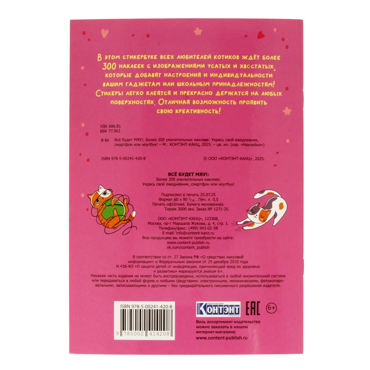 В ЭТОМ СТИКЕРБУКЕ ВСЕХ ЛЮБИТЕЛЕЙ КОТИКОВ ЖДЁТ более 300 умилительных наклеек с изображениями забавных усатых и хвостатых, которые добавят оригинальности вашим гаджетам, музыкальным инструментам или школьным принадлежностям! Стикеры легко клеятся и прекрасно держатся на любых поверхностях. Отличная возможность раскрыть свою индивидуальность!