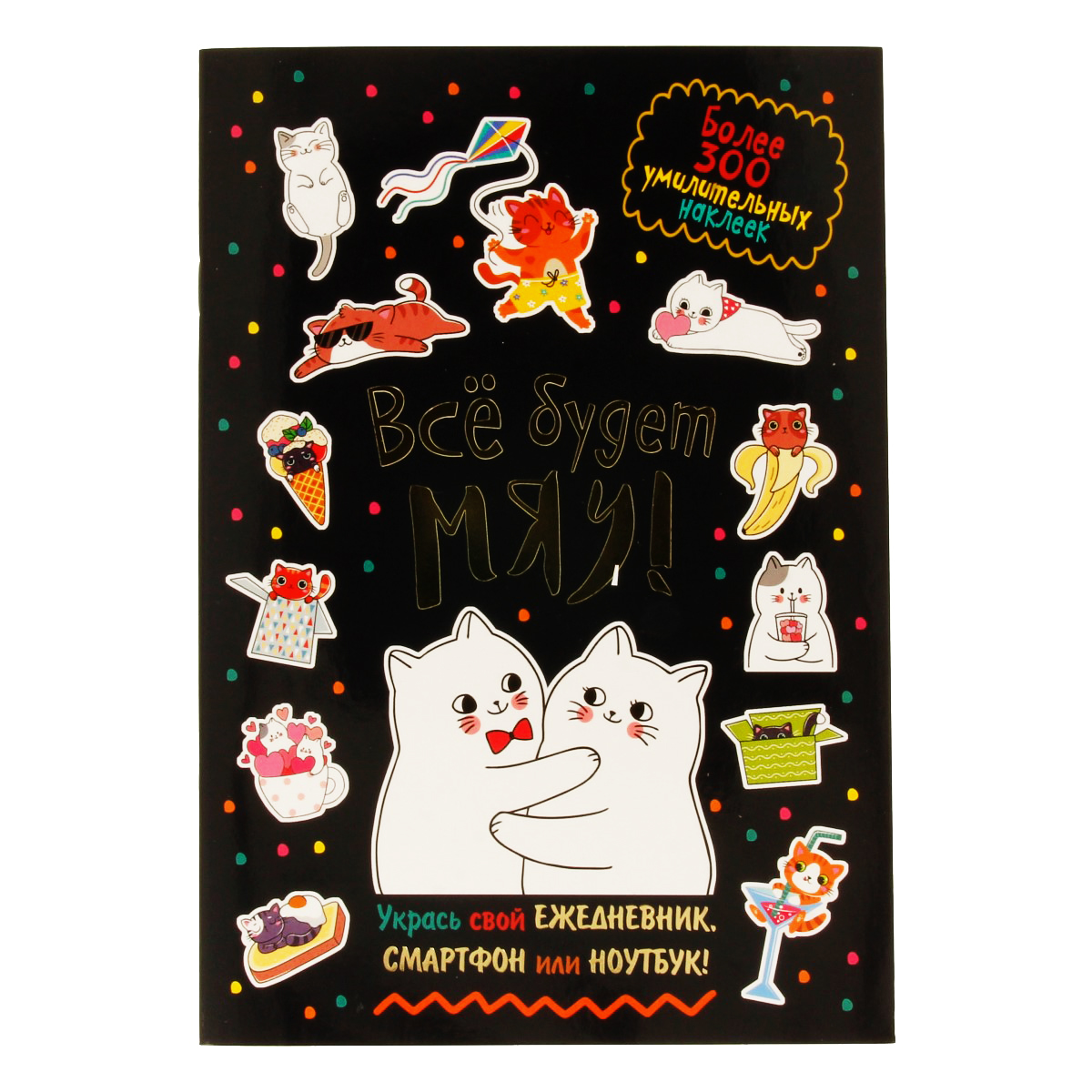 "Контэнт" Наклейки "Всё будет МЯУ!" Черная обложка, котики обнимаются 99908251