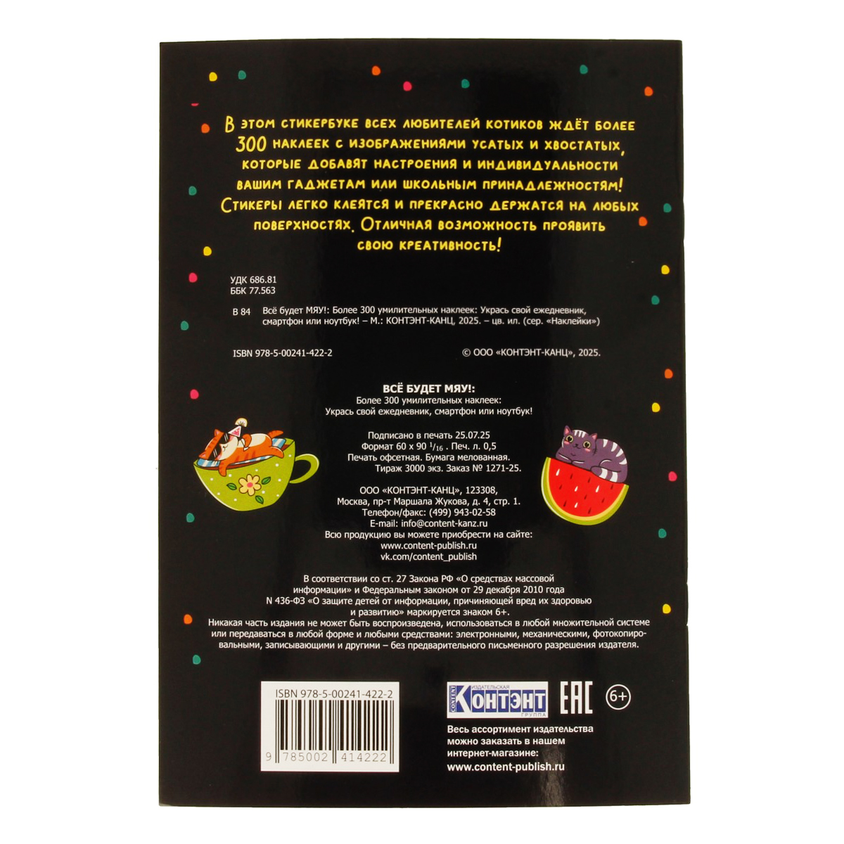 Контэнт Наклейки Всё будет МЯУ! Черная обложка, котики обнимаются 99908251 Фото 6.