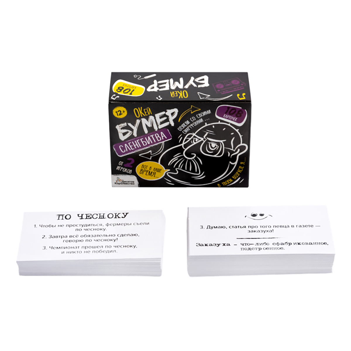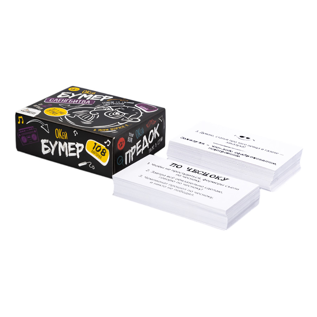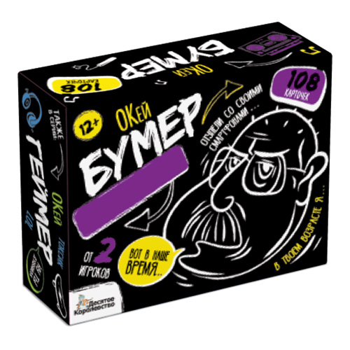 С настольной игрой для большой компании «Сленгбитва. Окей Бумер» игроки проверят уровень знаний сленга старшего поколения. Они должны правильно ответить на вопросы: что такое "нести пургу" и "стрематься"? кто такой "корефан" и "баклан"? и другие. Победит тот, кто даст больше правильных ответов!