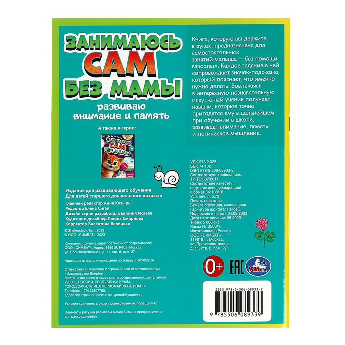 Брошюра «Развиваю внимание и память» из серии «Занимаюсь сам без мамы» ТМ «УМка» - отличный вариант для самостоятельных занятий ребёнка без помощи взрослых: - простые задания - проходим лабиринты, дорисовываем контуры - цветное оформление