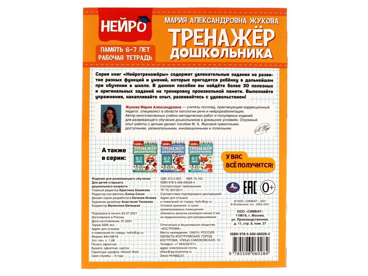 Рабочая тетрадь для детей 6-7 лет «М. А. Жукова. Нейротренажёр дошкольника. Память» ТМ «УМка» станет отличным помощником для родителей в развитии ребёнка: - соответствует ФГОС - интересные задания - удобный формат