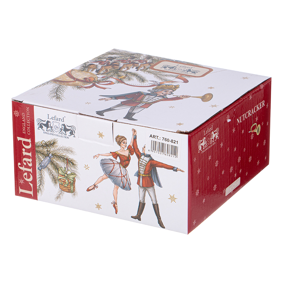 ТМ LEFARD эксклюзивная коллекция «Nutcracker» - Щелкунчик создана по мотивам одноименной истории, с которой знакомы все дети и взрослые. Волшебная история о новогоднем чуде идеально подходит для создания праздничного настроения. Широкий ассортимент тарелок, салатников, кружек, чайных пар поможет сервировать праздничный стол и создать сказочную атмосферу. Все изделия выполнены из качественного тонкого фарфора. Прямые современные формы, удобные объемы. Стильная, подарочная упаковка. Дарите сказку друзьям и близким людям! Не рекомендуется использовать в микроволновой печи, мыть в посудомоечной машине.
