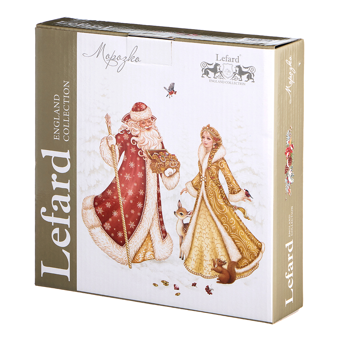 ТМ LEFARD эксклюзивная коллекция "Морозко" создана по мотивам любимой одноименной новогодней сказки, на которой выросли несколько поколений маленьких зрителей. Всем близка история доброй и красивой девушки Настеньки, которую злая мачеха отправила в лес на верную погибель. Детальные композиции, тонкие линии, высокое качество печати на тонкостенном белоснежном фарфоре превращает изделия в ожившие сюжеты. Разнообразие посуды и предметов сервировки добавят волшебства и красок в Ваш дом и порадует всех тех, кто сохранил в душе детскую радость и предвкушение чуда в самый ожидаемый праздник в году. Оригинальная упаковка. Прекрасный подарок. Вся продукция сертифицирована и безопасна для контакта с пищевыми продуктами. Можно использовать в СВЧ, не рекомендуется мыть в посудомоечных машинах во избежание повреждения золотой отводки [деколи] на изделиях.