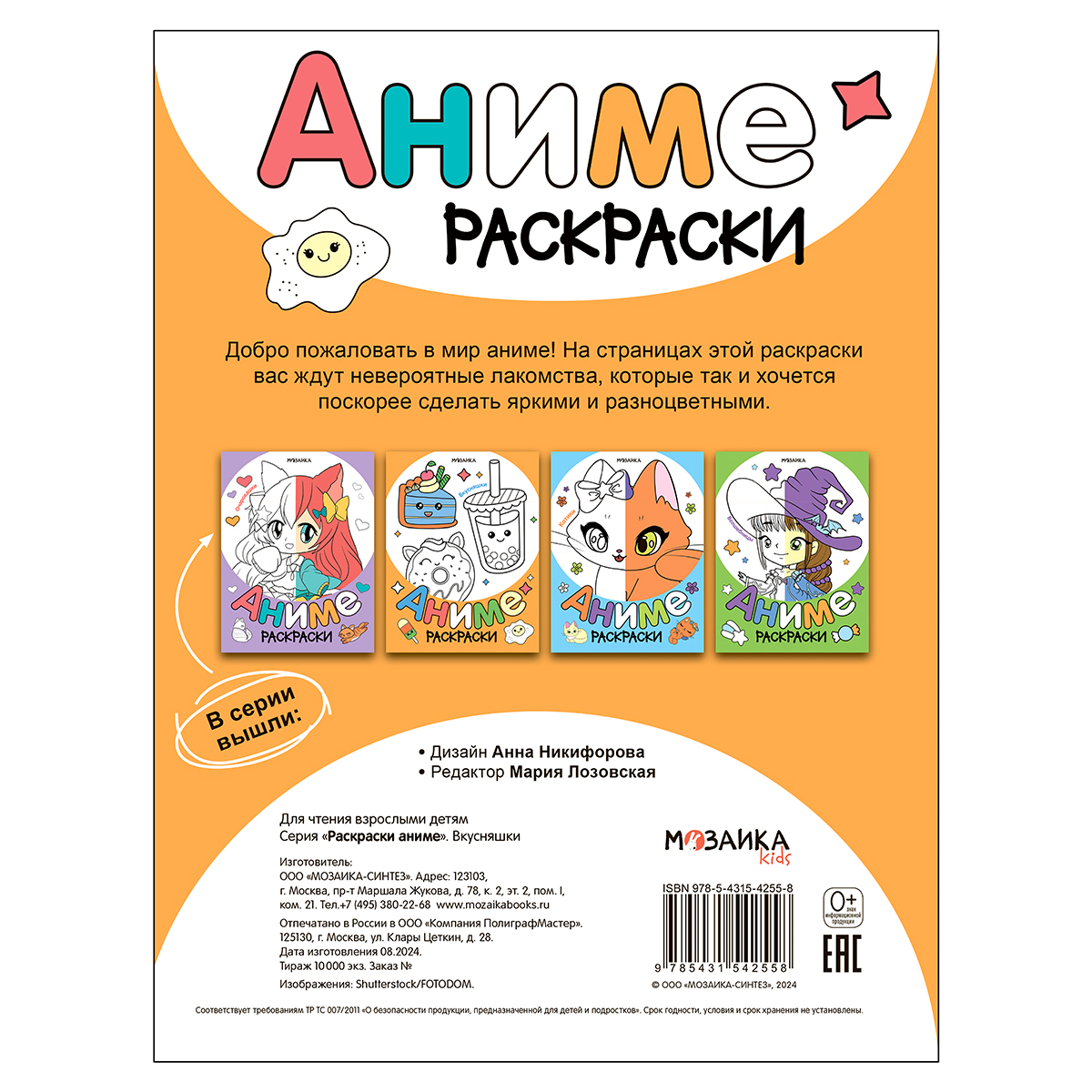 Вкусняшки {Серия «Раскраски аниме», книжки для раскрашивания} Книга «Вкусняшки» серии «Раскраски аниме» станет лучшим подарком для любителей магии и аниме. На страницах книги юных художников ждут притягательные вкусности. Раскрашивая их, ребенок сможет придумать свои истории и одновременно потренировать мелкую моторику, внимание и воображение.