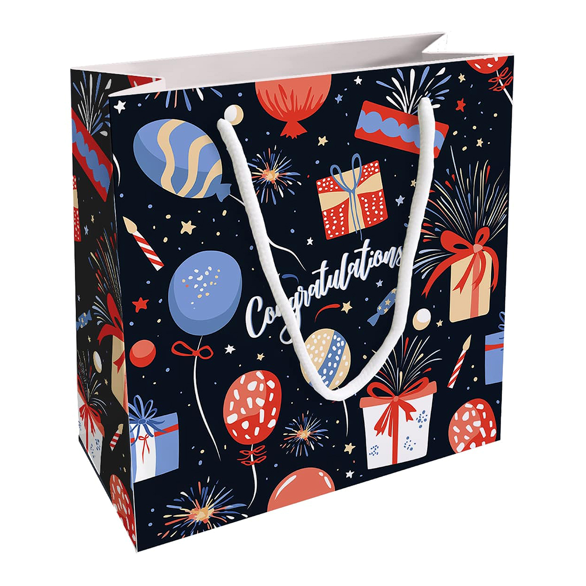 Пакет подарочный с подгибкой с веревочными ручками. Пакет из картона 200 г/м2 с матовой ламинацией.