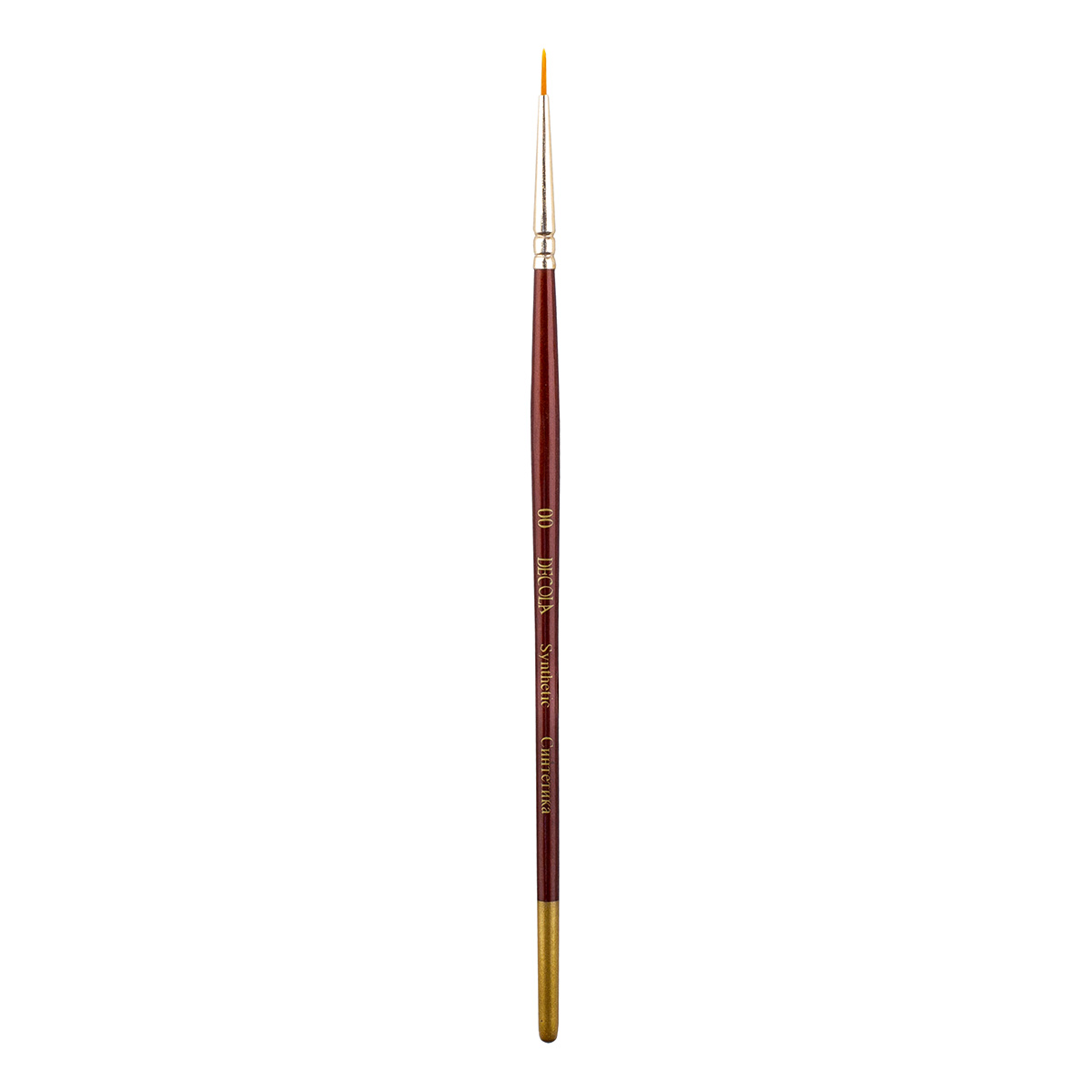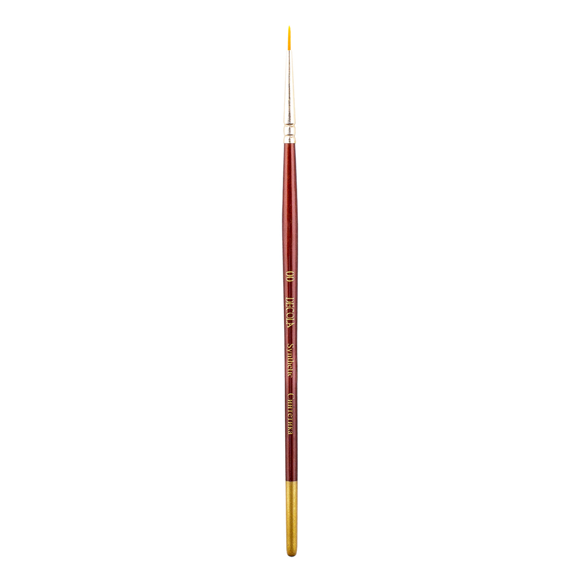 Кисти с синтетическим ворсом Decola идеально подходят для работы с акриловыми красками по любым поверхностям. Круглые кисти наиболее удобны при прорисовке мелких деталей. Кисти из качественной синтетики, средней жесткости, отличаются высокой упругостью и эластичностью, универсальны в использовании – подходят для гуаши, масла и акрила. Средняя жесткость волоса гарантирует бережное отношение к декорируемой поверхности при использовании в хобби техниках, а густой волос позволяет удерживать большое количество краски или лака. В зависимости от размера пучка используются как для прорисовки мелких деталей, так и для выполнения крупных деталей и заполнения фона. Также часто используются в хобби техниках – таких как декупаж, роспись по ткани, батик, роспись по керамике и т.д. Обойма металлическая, хромированная, ручка короткая, пропитана лаком, окрашена цветом «темная медь». Номера 0-3 используются для создания тонких линий и мелких деталей, 4-12 для нанесения фона и больших деталей. Серийно выпускаются: 000, 0,0, 1,2,3,4,5,6,7,8,9,10,11,12.