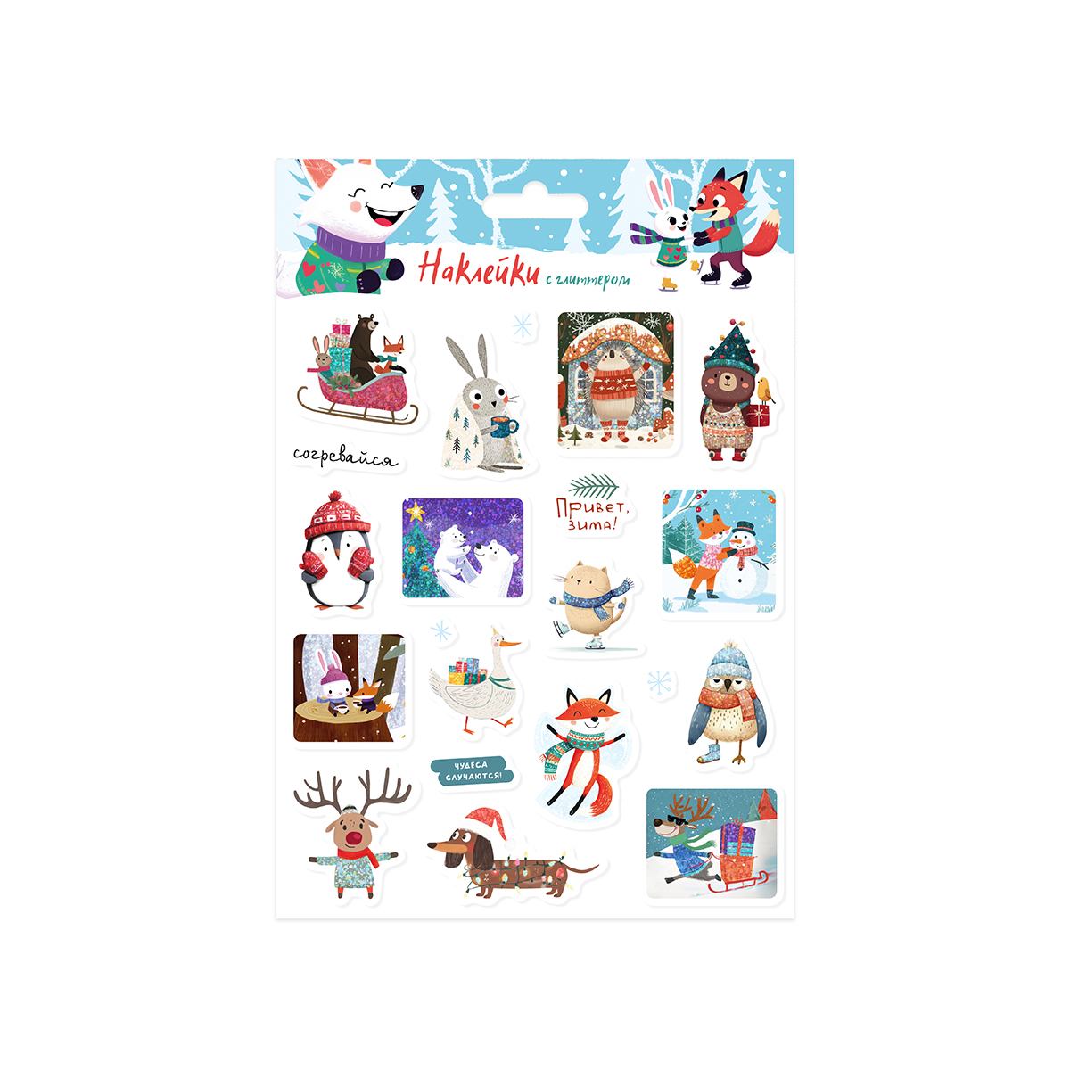 "Липляндия" Наклейка декоративная плёночная с глиттером A5+ 15 х 22 см 24613 Зима в лесу