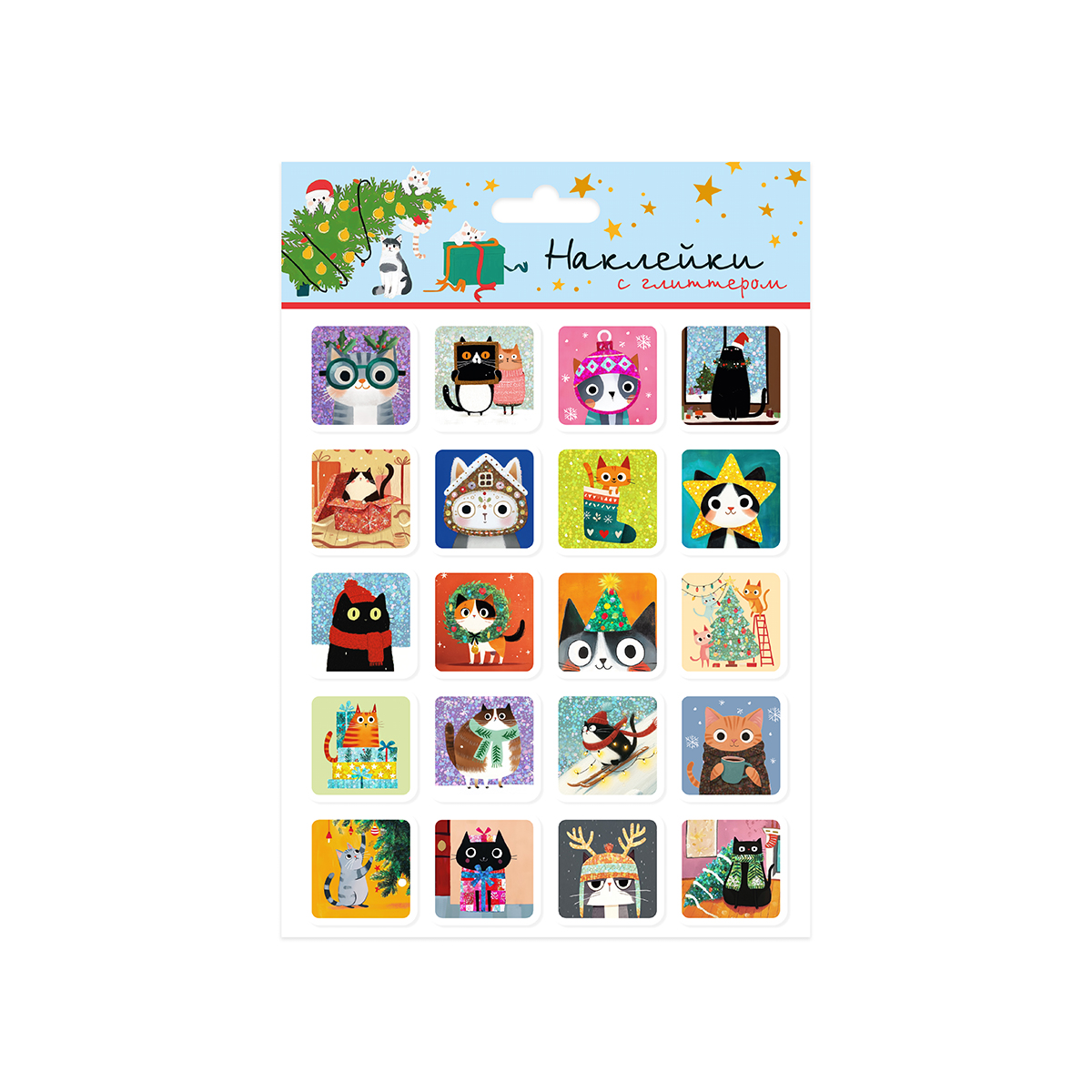 "Липляндия" Наклейка декоративная плёночная с глиттером A5+ 15 х 22 см 24637 Котики зимние