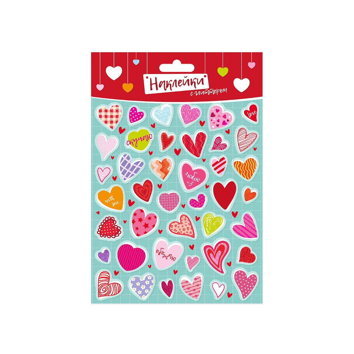 "Липляндия" Наклейка декоративная плёночная с глиттером A5+ 15 х 22 см 24668 Сердечки