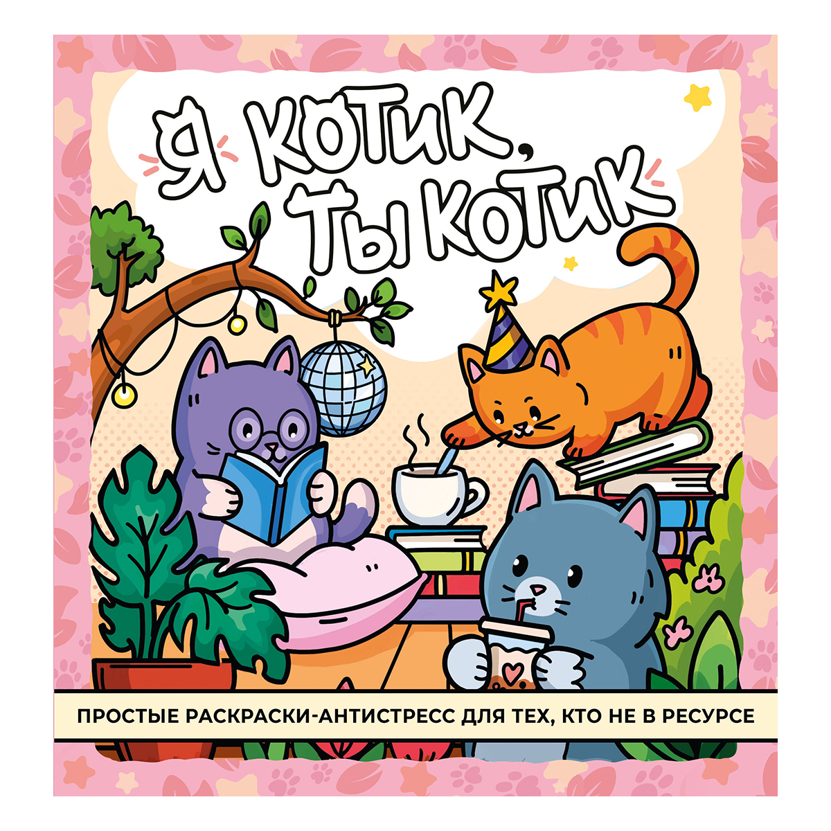 «Я котик, ты котик» — антистресс-раскраска для взрослых, которые мечтают о тепле, книгах и неспешных днях. Котики обожают книги — особенно когда можно растянуться между строк и объявить перерыв на мурчание. На страницах этой раскраски — мягкий книжный хаос, цитаты с хвостиком и пространство для вашего настроения. Возьмите маркеры, цветные карандаши или акварель, добавьте нежных оттенков и позвольте себе расслабиться. Для лучшего результата подложите лист бумаги между страниц. Раскрашивайте, отдыхайте, мурчите вместе с пушистыми хранителями знаний!