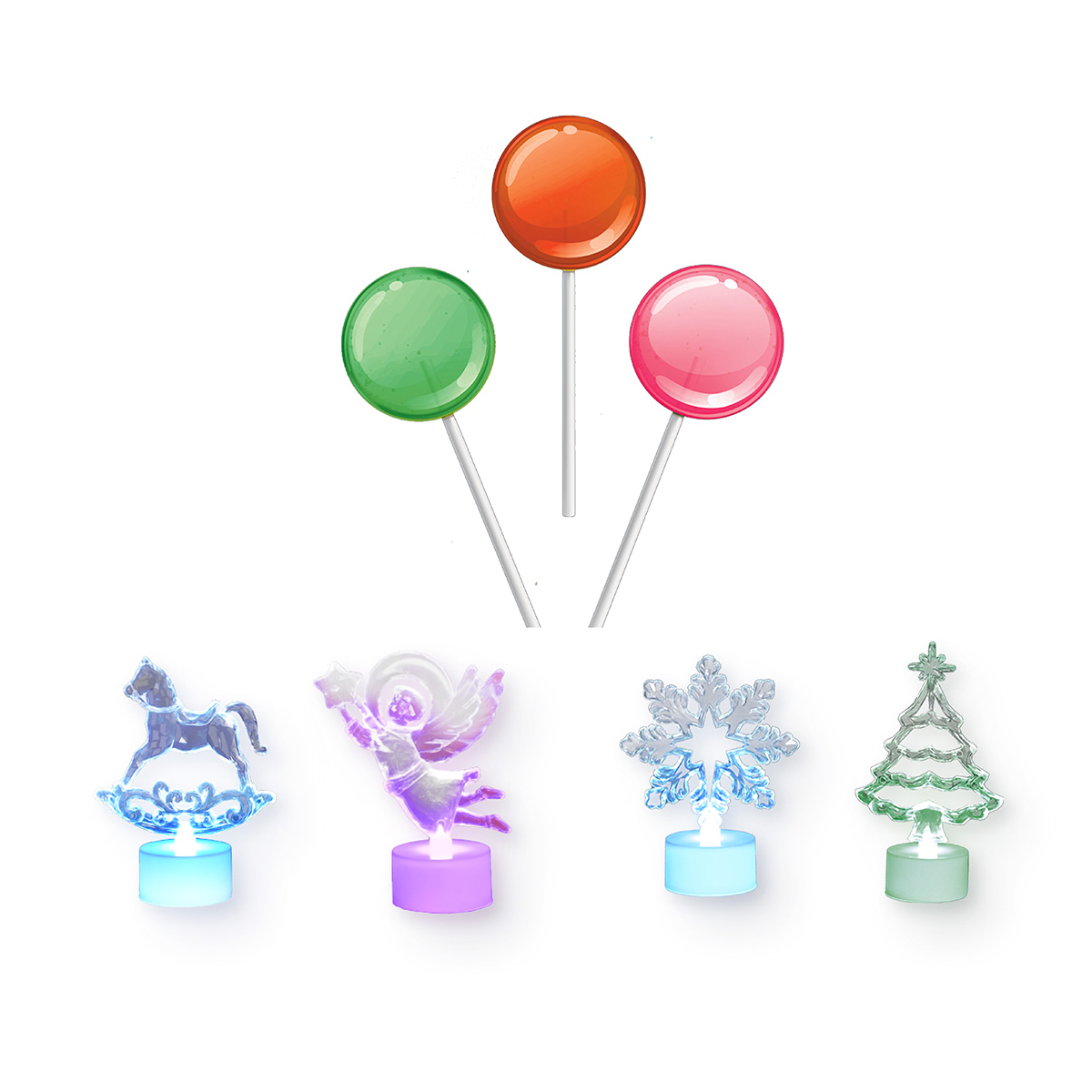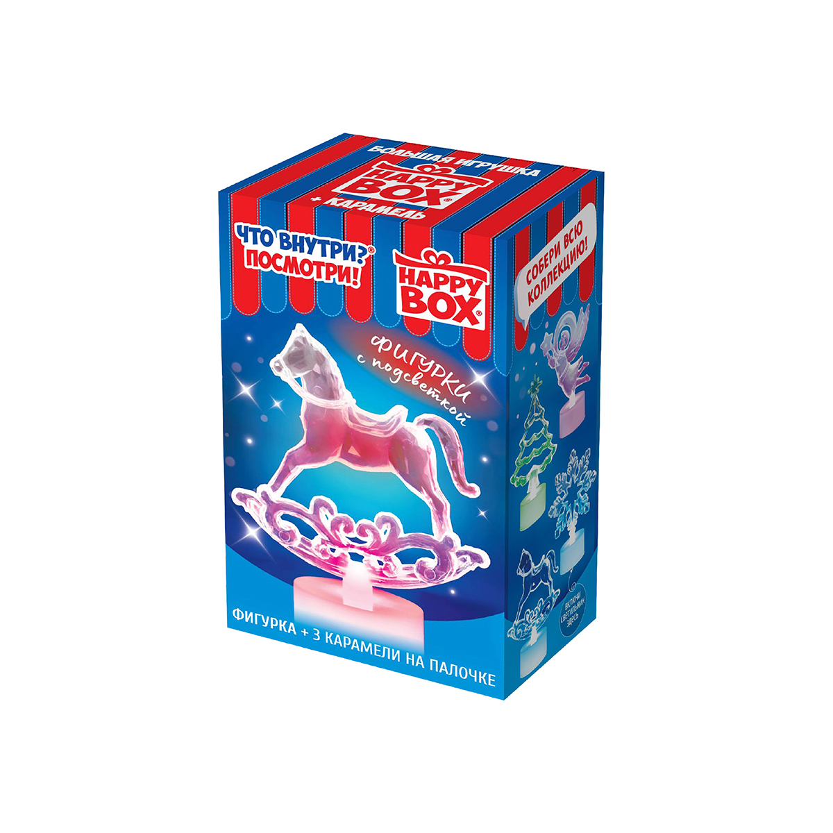 Игрушка с конфетами, выполненная в новогодней стилистике- готовый подарок для ребёнка. Наши новогодние игрушки с конфетами сочетают в себе оригинальный праздничный дизайн и качественные сладости. Коллекция состоит из 4 светящихся фигурок: лошадка, снежинка, ангел и ёлочка. Также внутрь коробочки вложены три круглых плоских леденца на палочке с разными вкусами: клубника, яблоко, апельсин. Каждый из них упакован в индивидуальную прозрачную плёнку. Карамель производится на нашей собственной фабрике «МАК-Иваново» с использованием натуральных ингредиентов.