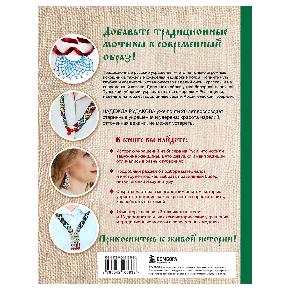 Привнесите традиционные мотивы в современную жизнь! Дополните образ узкой бисерной цепочкой Тульской губернии, украсьте платье ожерелком Рязанщины, наденьте на торжество длинные серьги Архангельской губернии, сплетенные своими руками! В книге вы найдете 14 мастер-классов в 3 техниках плетения и 13 дополнительных схем: исторические украшения и традиционные мотивы в современных моделях. Мастер-классы сопровождает подробный раздел о подборе материалов и инструментов и секреты мастера с многолетним опытом. Прикоснитесь к живой истории!