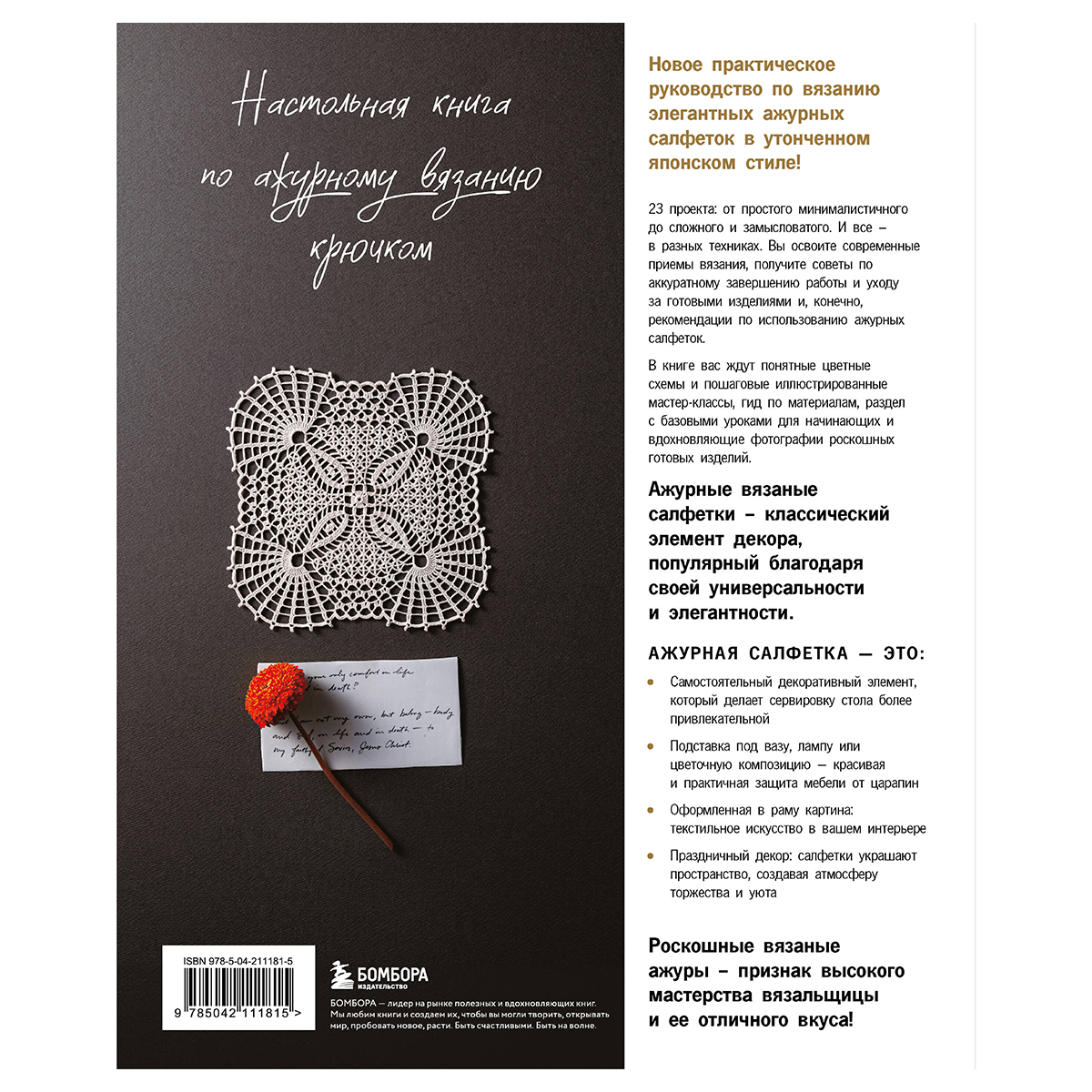 В ваших руках — уникальное практическое руководство по вязанию элегантных ажурных салфеток крючком. Откройте для себя мир изысканных узоров, вдохновленных утонченной японской культурой! Книга предлагает 23 разнообразных дизайна: от простых минималистичных моделей до сложных и замысловатых. Каждый проект выполнен в уникальной технике, что позволит вам расширить свои навыки и попробовать что-то новое. Вас ждут понятные цветные схемы, подробные пошаговые мастер-классы с иллюстрациями, гид по выбору материалов, а также раздел с базовыми уроками для тех, кто только начинает свой путь в вязании. Особое внимание уделено эстетике японского стиля, где ценится гармония, простота и изящество. Вдохновляющие фотографии готовых изделий помогут вам представить, как ваши работы могут украсить интерьер или стать изысканным подарком. Эта книга — не просто сборник схем, а настоящий проводник в мир творчества, который поможет вам освоить новые техники, улучшить свои навыки и создавать уникальные изделия, наполненные красотой и утонченностью японского искусства. Незаменимый помощник для всех, кто увлекается вязанием крючком и стремится к совершенству!