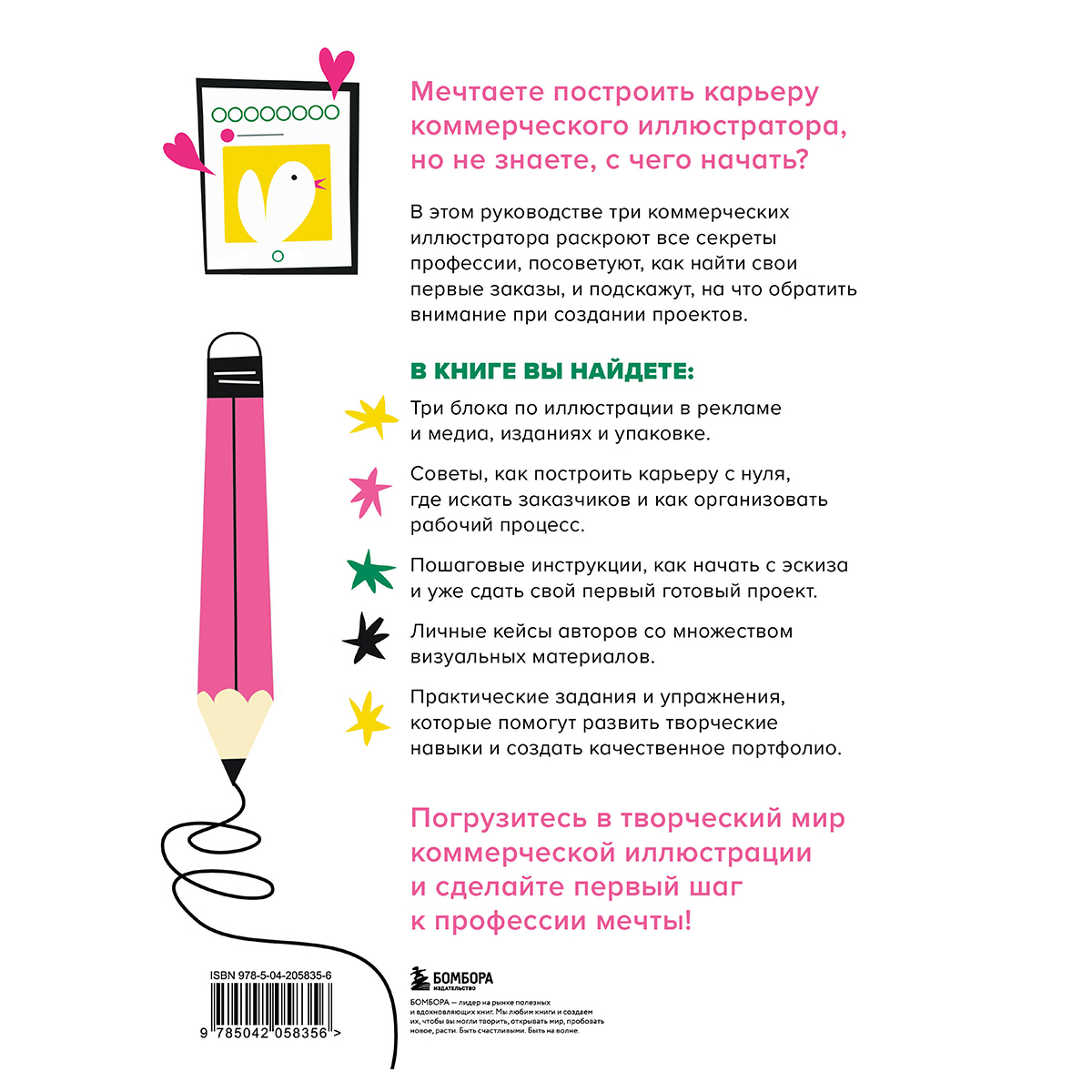 В этом практическом руководстве три профессиональных иллюстратора расскажут о своем творческом пути в коммерческой иллюстрации: от дизайна упаковки и полиграфии к работе с изданиями и медиа. На примере реальных проектов вы познакомитесь с нюансами профессии, изучите возможные направления карьерного развития и с помощью упражнений и советов создадите портфолио мечты. Книга идеально подойдет как для начинающих иллюстраторов, так и для тех, кто хочет сменить сферу деятельности и выбирает новую профессию, а также для студентов профильных направлений.