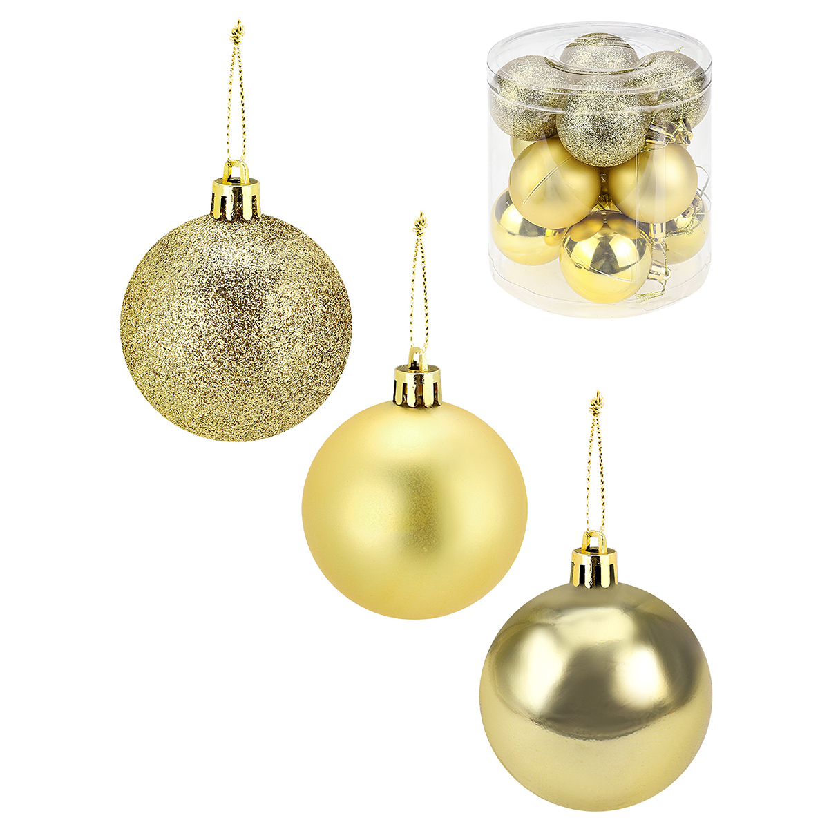 Шар — незаменимое ёлочное украшение, которое поможет создать невероятно уютную атмосферу Нового Года! Набор ёлочных шаров в едином стиле прекрасно подойдёт для декора ёлки или других элементов интерьера. Шары прослужат вам долгие годы, так как сделаны из прочного пластика. Вам не придётся беспокоиться, что дети или животные их разобьют! Размер: 5 см. В наборе 12 шт.