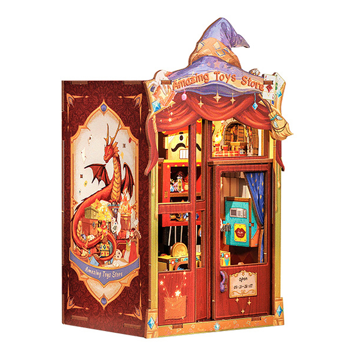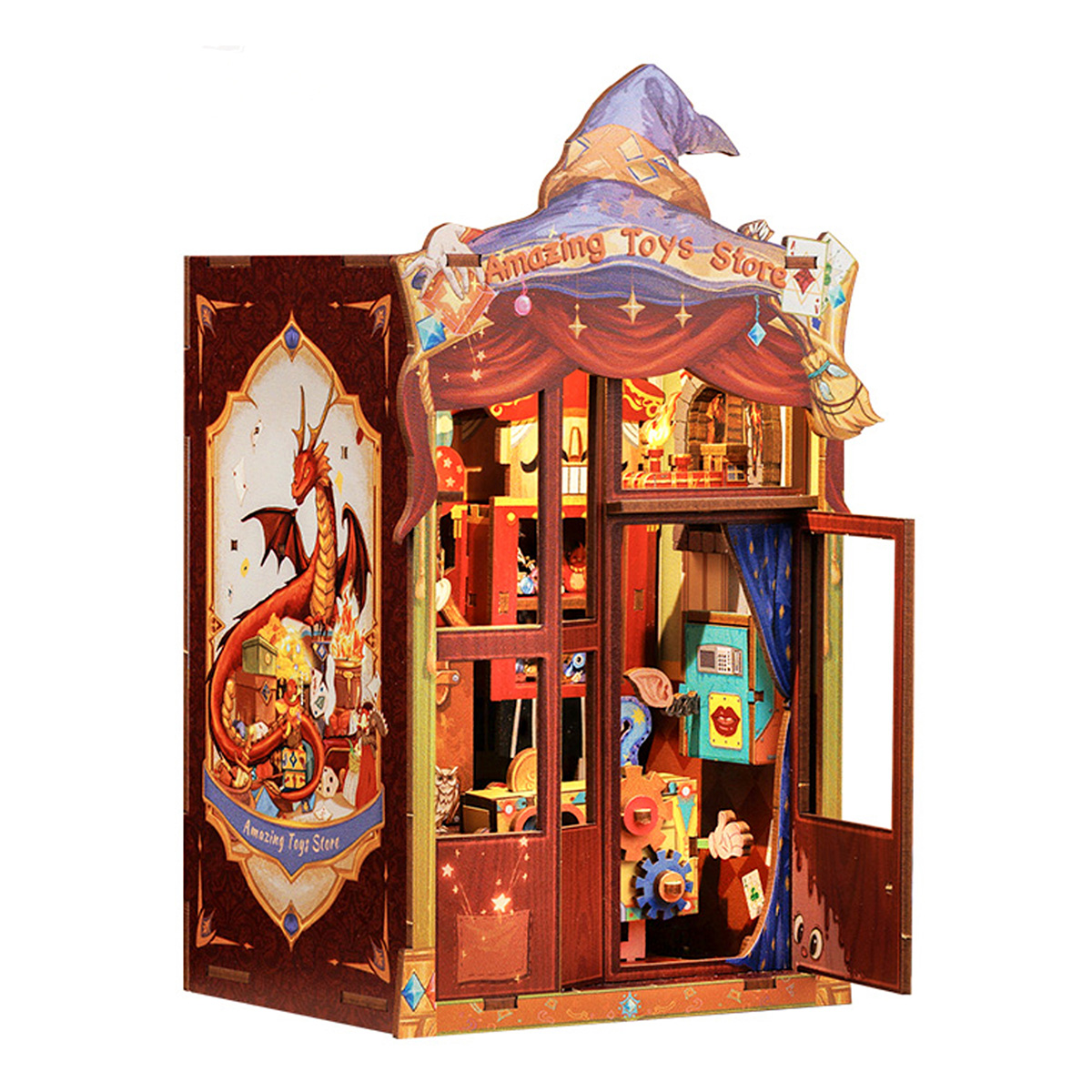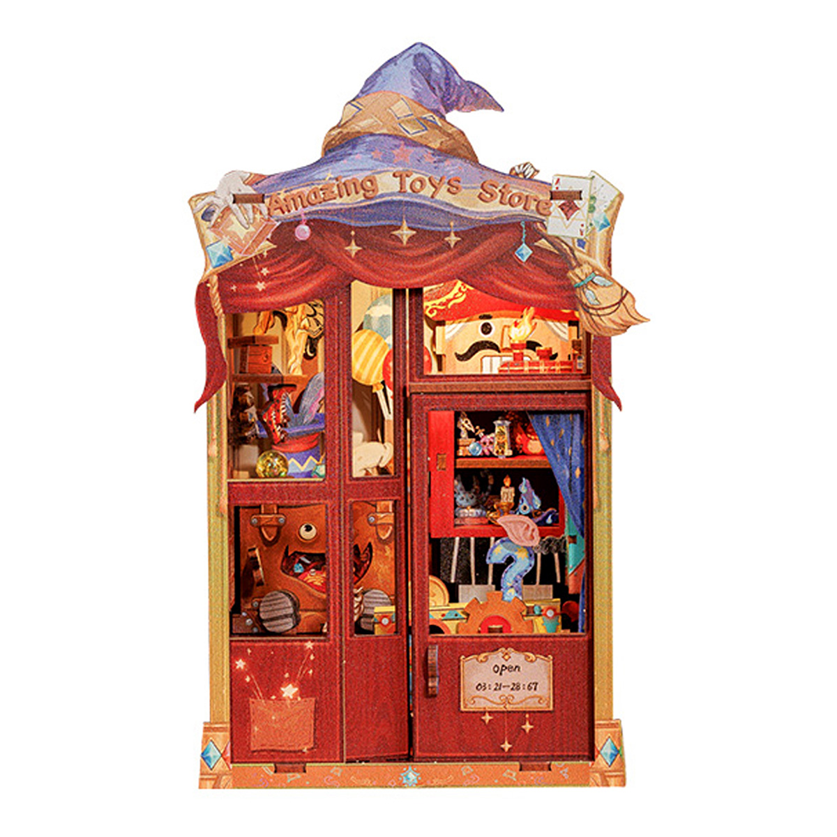 Магазин удивительных игрушек: В лучах раннего утреннего солнца, пробивающегося сквозь туман над городом, в конце старой улицы находится небольшой шикарный магазин игрушек, который тепло сияет в утреннем свете. Над деревянной дверью в деревенском стиле висит латунная вывеска с надписью “Магазин удивительных игрушек”. открыто с 03:21 до 28:67. Когда в магазин игрушек заглядывает солнце, это означает, что пришло время открывать бизнес. Вдохновляющий дизайн: Магазин Amazing Toys сочетает игрушки с фантазией и волшебством, чтобы создать уникальный и запоминающийся волшебный опыт для каждого покупателя. Дизайн направлен на создание пространства, полного волшебства и сюрпризов, с ощущением чуда благодаря взаимодействию и исследованию. Каждый визит превращается в путешествие, полное сюрпризов и радости, позволяя клиентам почувствовать, что они находятся в фантастическом мире бесконечных чудес и радости. Телефон, Автомат для раздачи золотых монет, Кукольные ступеньки, Пылающий поезд, Высококачественная древесина, пошаговые схемы и инструкции на английском языке. Прекрасное украшение и коллекция. Стимулируйте любознательность. Развивайте практические навыки и креативность. Снимайте стресс, веселитесь и ведите здоровый образ жизни. Преимущества нашей продукции: Гладкая, пыленепроницаемая и раздвижная дверь, поддерживайте чистоту.