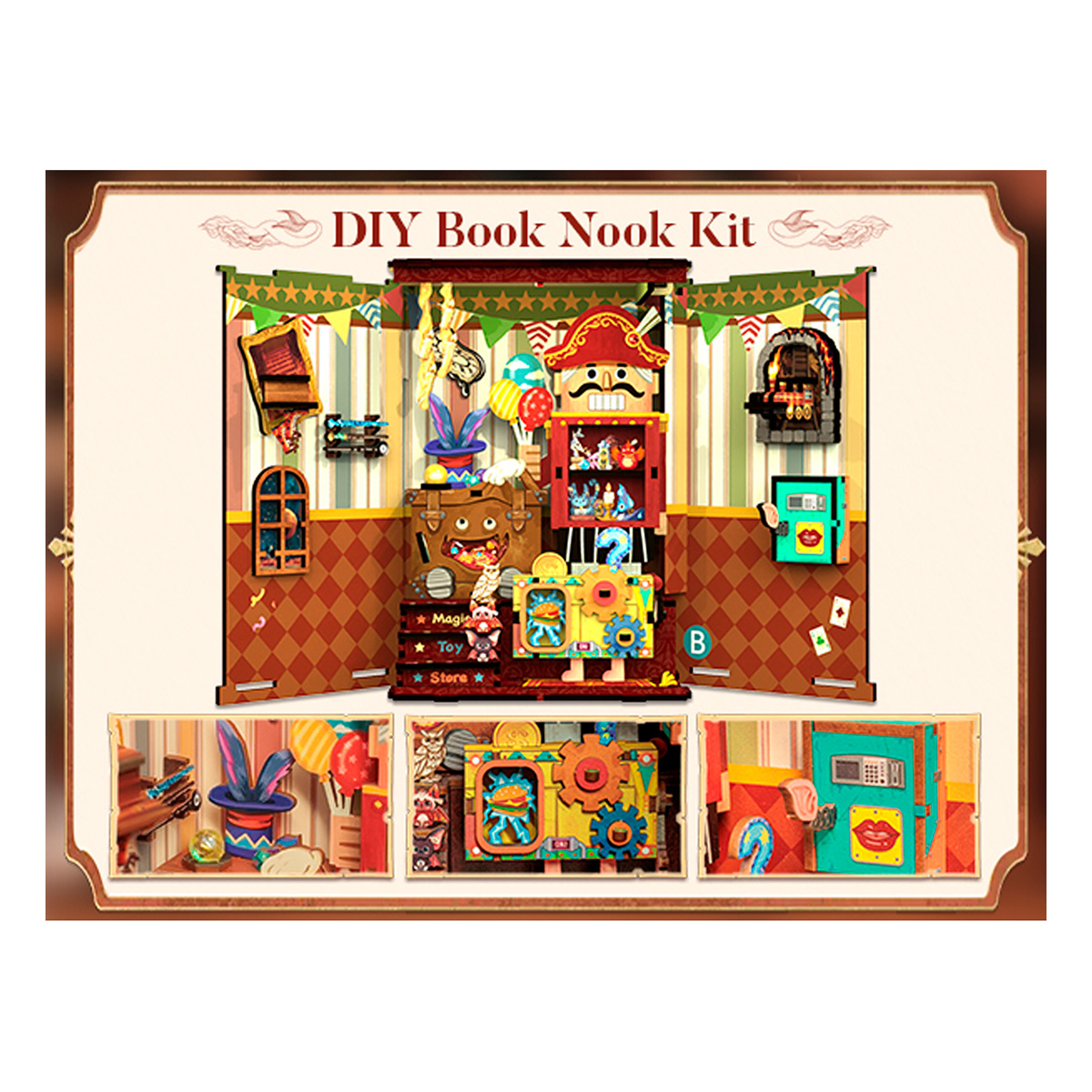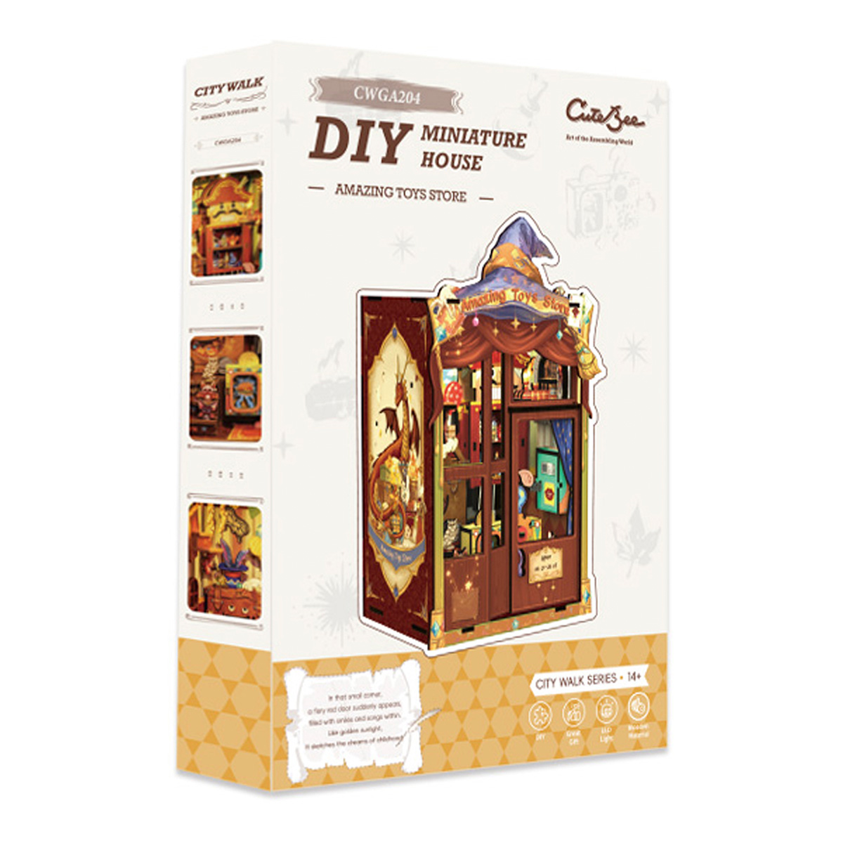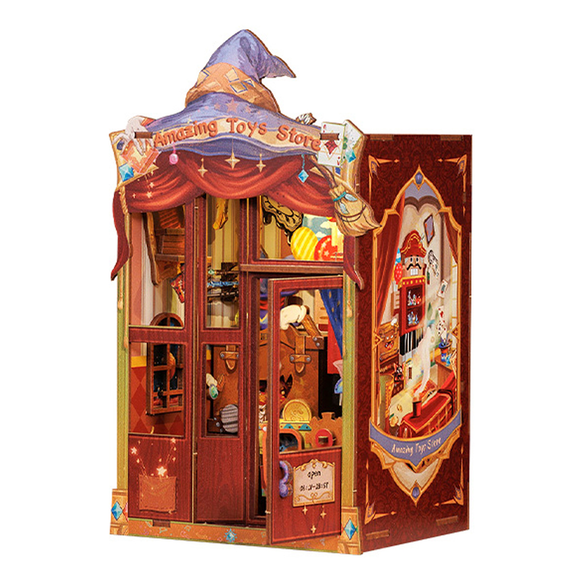 Магазин удивительных игрушек: В лучах раннего утреннего солнца, пробивающегося сквозь туман над городом, в конце старой улицы находится небольшой шикарный магазин игрушек, который тепло сияет в утреннем свете. Над деревянной дверью в деревенском стиле висит латунная вывеска с надписью “Магазин удивительных игрушек”. открыто с 03:21 до 28:67. Когда в магазин игрушек заглядывает солнце, это означает, что пришло время открывать бизнес. Вдохновляющий дизайн: Магазин Amazing Toys сочетает игрушки с фантазией и волшебством, чтобы создать уникальный и запоминающийся волшебный опыт для каждого покупателя. Дизайн направлен на создание пространства, полного волшебства и сюрпризов, с ощущением чуда благодаря взаимодействию и исследованию. Каждый визит превращается в путешествие, полное сюрпризов и радости, позволяя клиентам почувствовать, что они находятся в фантастическом мире бесконечных чудес и радости. Телефон, Автомат для раздачи золотых монет, Кукольные ступеньки, Пылающий поезд, Высококачественная древесина, пошаговые схемы и инструкции на английском языке. Прекрасное украшение и коллекция. Стимулируйте любознательность. Развивайте практические навыки и креативность. Снимайте стресс, веселитесь и ведите здоровый образ жизни. Преимущества нашей продукции: Гладкая, пыленепроницаемая и раздвижная дверь, поддерживайте чистоту.