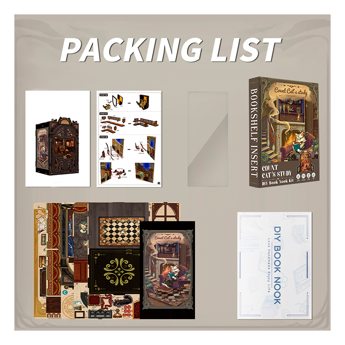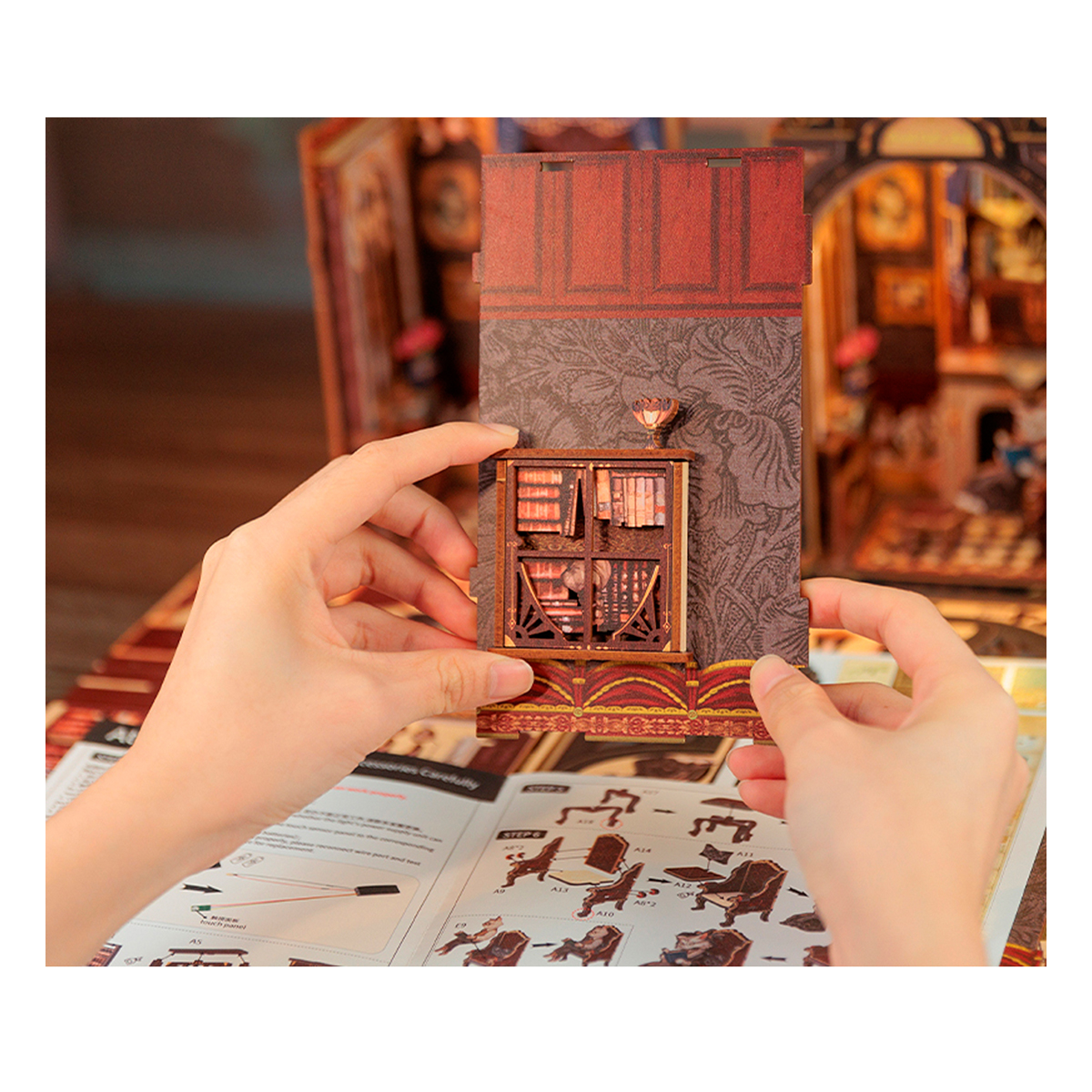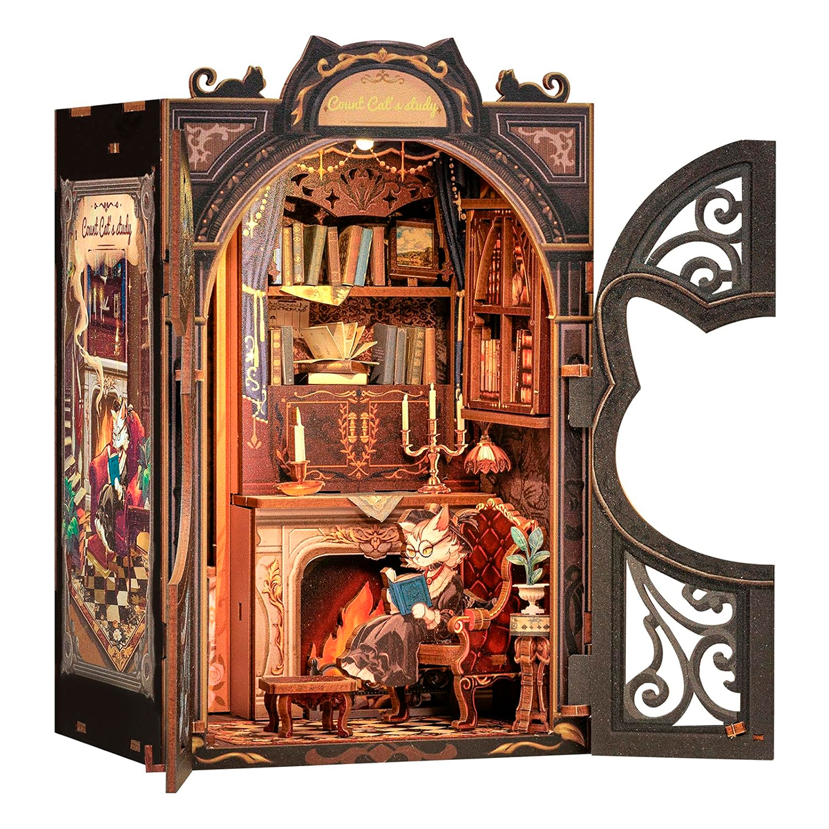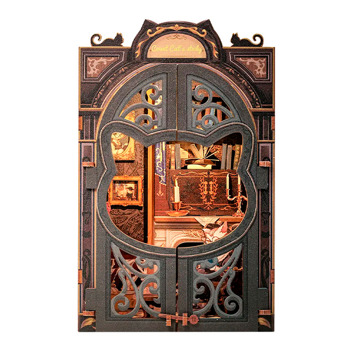 Кабинет графа Кэтса: кабинет графа Кэтса, личное пространство, принадлежащее только герцогу, великолепен и уютен одновременно. Уникальная дверная рама с кошачьей головой позволит нам ощутить ее таинственность, позволит на время отвлечься от шума и суеты внешнего мира, погрузиться в мир книг, ощутить удовлетворение и радость познания. Каждый уголок кабинета излучает спокойствие и элегантность, что делает его незабываемым. Отголоски прошлого В уединенном пространстве, наполненном ароматом старины и насыщенным ароматом книг, молодая и элегантная кошка Граф Арья с детства была тесно связана с этим кабинетом, часто сидя в одиночестве у окна и предаваясь воспоминаниям о прошлом. Ее опекун, некогда великолепный кот Эрл Алекс, ныне воплотившийся в черного кота, по-прежнему охраняет это место. Диван и камин из красного бархата, Книжные шкафы и лампы для чтения, Книжный шкаф Кэт, портрет графа Кэт. Высококачественная древесина премиум-класса, пошаговые схемы и инструкции на английском языке, прекрасное оформление и коллекция. Защелка Falcon Mou - сокращает использование клея, защищая окружающую среду Увлекательное рукоделие - это очень полезный способ расслабиться и снять стресс. Преимущества нашей продукции: Открывающаяся дверца, пыленепроницаемая дверца, Поддерживаемая в чистоте, выдвижная