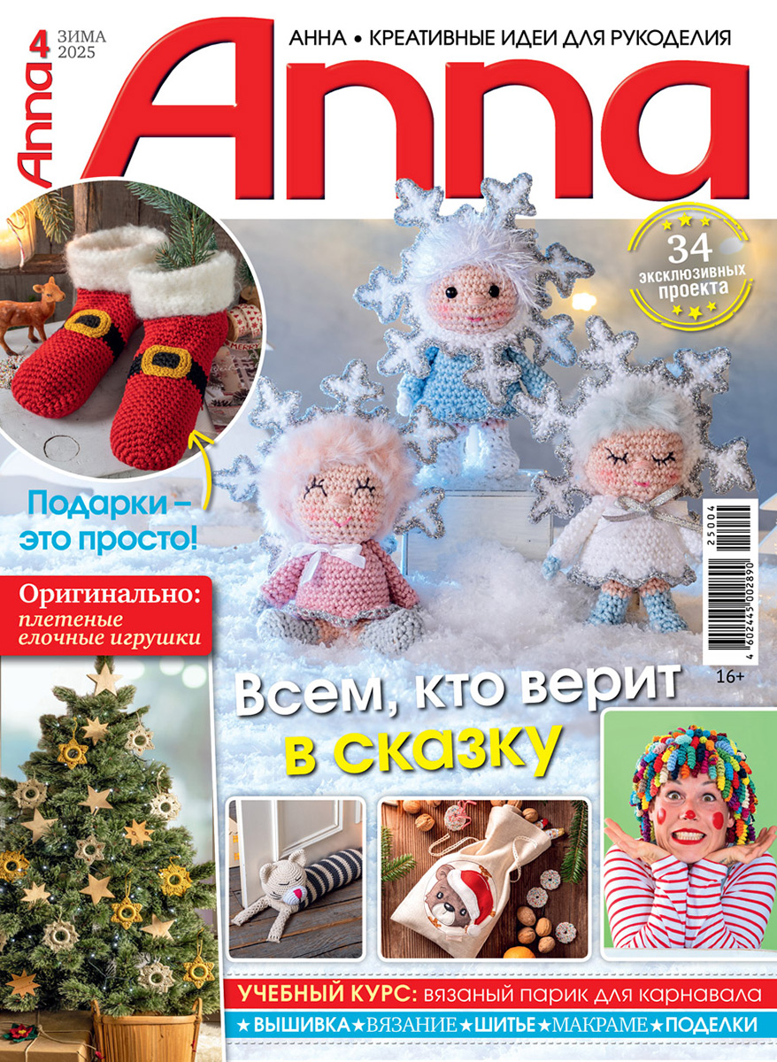 Популярный журнал по рукоделию – Anna, специальный выпуск издания “Все для женщины”. В каждом номере журнала собраны уникальные проекты, выполненные в разных техниках – вязание крючком, спицами, вышивка, украшения из бисера, пэчворк и другие. На страницах журнала вы найдете много красивых и оригинальных проектов, всевозможные идеи по созданию поделок и аксессуаров для дома, элементов декора. Вы сможете создать великолепные подарки для ваших близких и друзей, украсить ваш дом неповторимым эксклюзивом.