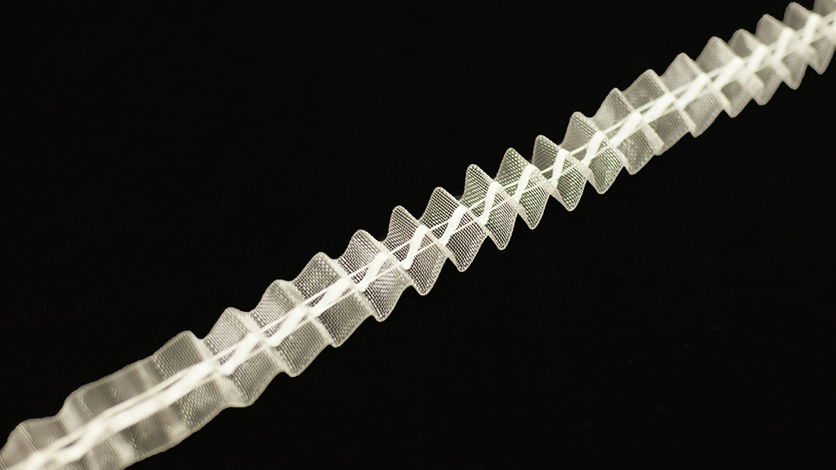 2 шнура, с петельками для крючков, сборка "гармошка". Лента притачивается к верхнему краю штор и применяется для создания разнообразных складок и сборок. Для расчета необходимого количества шторной тесьмы, нужно длину карниза умножить на определенный коэффициент того вида ленты, который вы выбрали и к полученной величине прибавить 8 см на припуски.