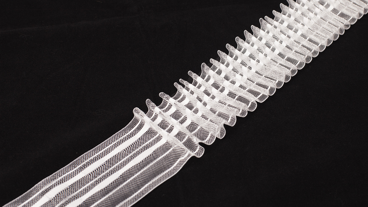 Сборка "карандаши", 4 шнура. Лента притачивается к верхнему краю штор и применяется для создания разнообразных складок и сборок. С 2-мя кармашками. КОЭФФИЦИЕНТ сборки: 1/2