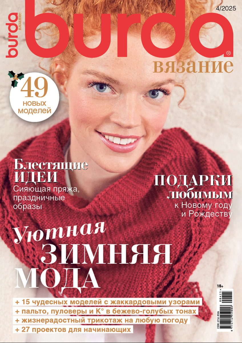Burda Вязание – это специальный выпуск журнала Burda для тех, кто любит вязать на спицах и крючком. В каждом выпуске представлено более 25 моделей , которые пополнят сезонный гардероб, а также аксессуары для создания модных образов. Отличительная особенность всех коллекций: актуальный дизайн, европейский стиль и комфорт. При разработке изделий используется высококачественная пряжа. Подробные инструкции снабжены схемами и выкройками. Модели имеют разную степень сложности, рассчитанную, в том числе, и на новичков. Модели представлены широким размерным рядом - от 32 до 54 - и сопровождаются подробными инструкциями, точными схемами и выкройками. Разный уровень сложности позволяет воплотить свои умения как начинающим вязальщицам, так и опытным рукодельницам.