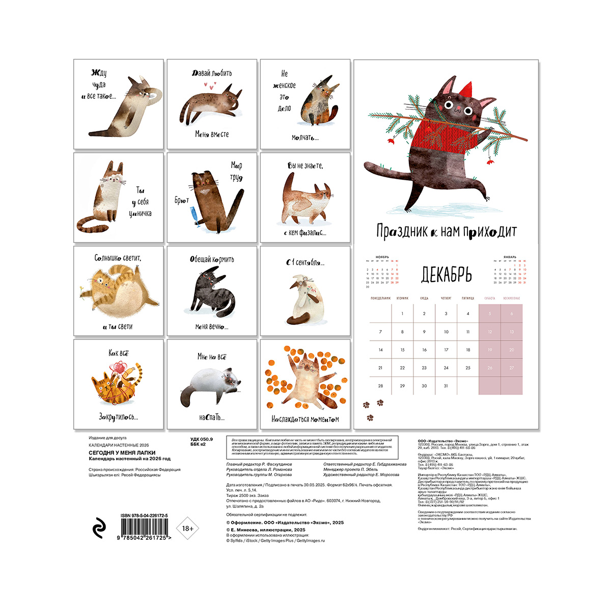 О серии: Наши настенные календари отличаются высоким качеством исполнения! Тщательно подобранные иллюстрации, напечатанные на глянцевой бумаге высочайшего качества, станут настоящим украшением дома, а в календарной сетке найдется место для ваших планов: большие клетки позволят делать записи и организовать свой год! В календаре также отмечены все государственные праздники. В серии настенных календарей издательства «ЭКСМО» каждый найдет тему по вкусу: великие художники, великолепные подборки с самыми знаменитыми произведениями искусства, легендарные кинематографические саги и игры, главные книжные авторы и бестселлеры, фотографии и иллюстрации любимых животных и многое-многое другое!