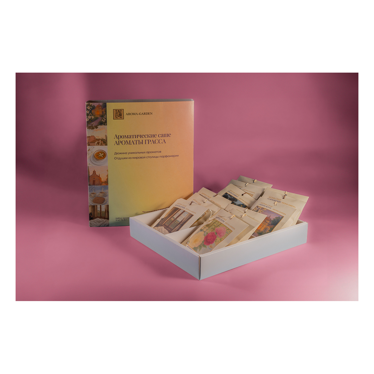 Набор подарочный из 12 ароматических саше,изготовленных по технологии AROMA-TOUCH в дизайнерской коробке-слайдере с 4 отделениями, по 3 саше в каждом. Аромат каждого арома-саше ассоциируется с отдельным местом или историей, о чем написано коротко на упаковке и на общей сопроводительной открытке, которая прилагается к каждому набору. Двенадцать французских ароматов из сердца парфюмерной столицы мира Грааса.Каждый запах-это страница из дневника. где записаны самые яркие мгновения путешествия по Лазурному берегу и не только