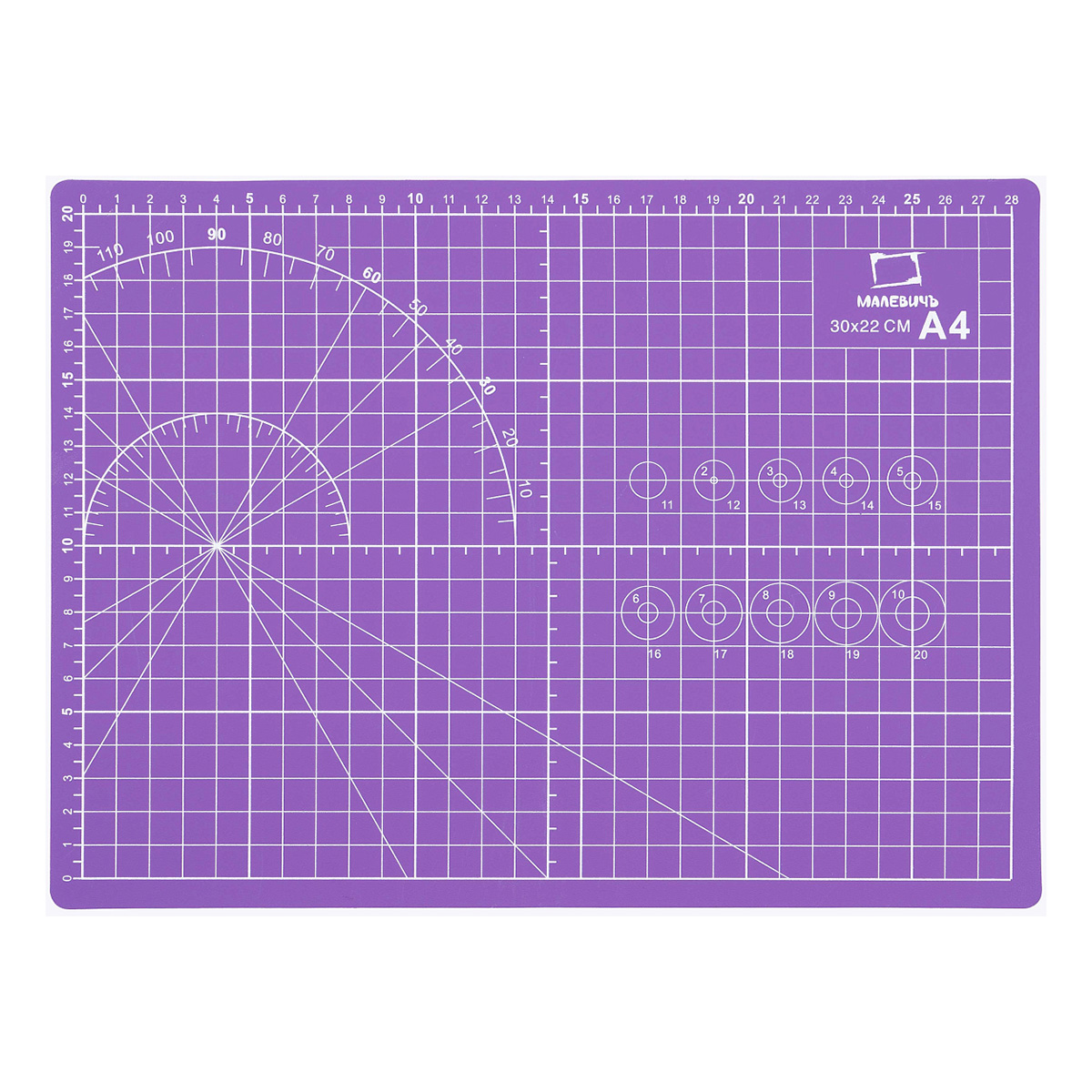 "Малевичъ" Коврик для резки 3-х слойный 30 см х 22 см х 0.3 см A4 сиреневый 195331