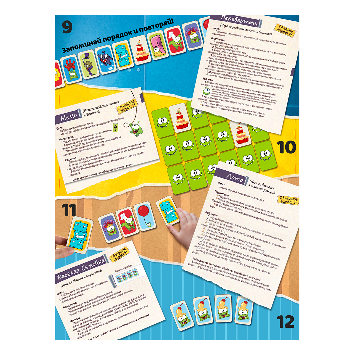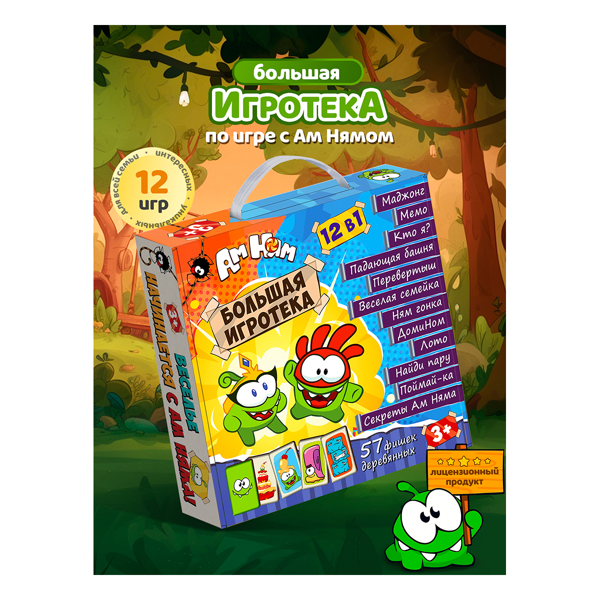 Подарочная настольная игра "Игротека с Ам Ням 12 в 1" – это настоящая находка как для детей, так и для родителей. Набор содержит 57 фишек с Ам Ням в мешочке и инструкцию со всеми 12-ю играми в которые можно играть: это и Мемо, и домино, и падающая башня, и маджонг и многи едругие. Все они являются - уникальной разработкой игры в стиле Ам Ням. Подходит, как новичкам, так и знатокам игры. Узнаваемые персонажи, знакомые правила. Развивает внимательность, скорость реакции, память. Большая вариативность набора, возможность играть и одному, и в компании. Идеальный подарок фанатам забавного Ам Няма !Состав: 57 фишек [3х52 см], инструкция, мешочек, коробка [25х24Х5 см] с ручкой