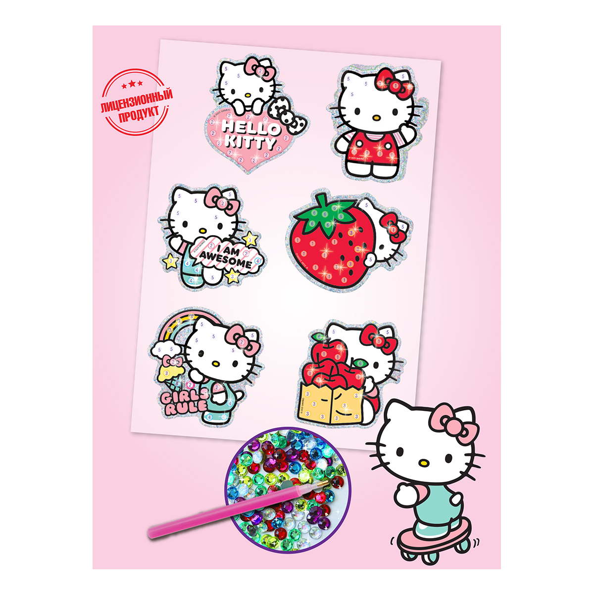 Увлекательное творчество для детей. Новый набор "укрась наклейки стразами" понравится девочкам - поклонницам Hello Kitty. Сначала нужно приклеить стразы по номерам на наклейки, и потом готовым шедевром можно украсить тетради, невник, телефон. Наклейки голографическиесостав: 6 голографических наклеек с клеевым слоем, 100 цветных страз, карандаш-стилус. Упаковка: 15,5*23,5 см