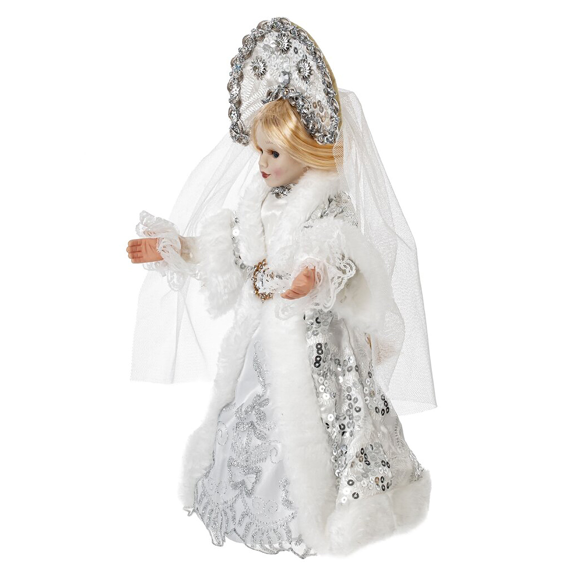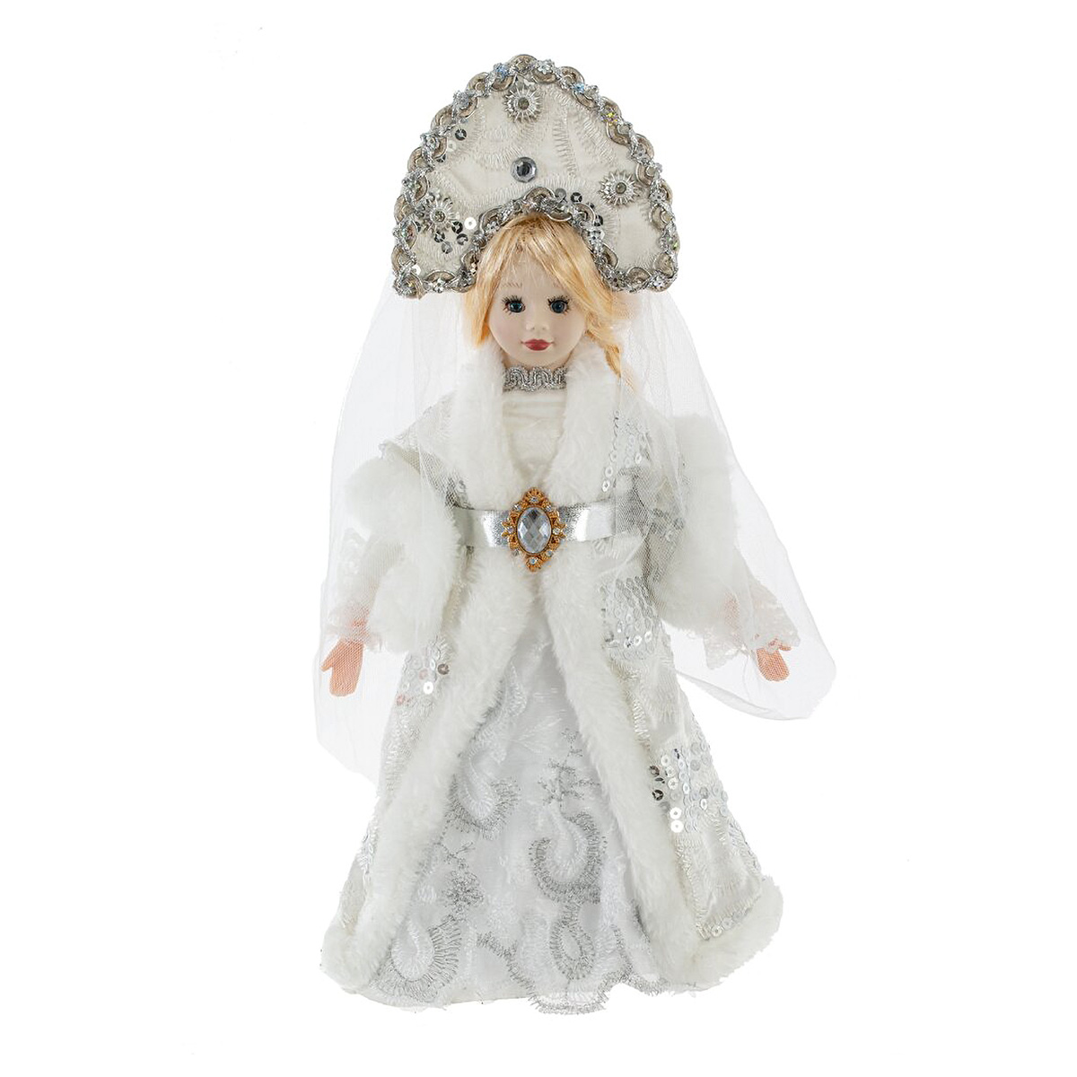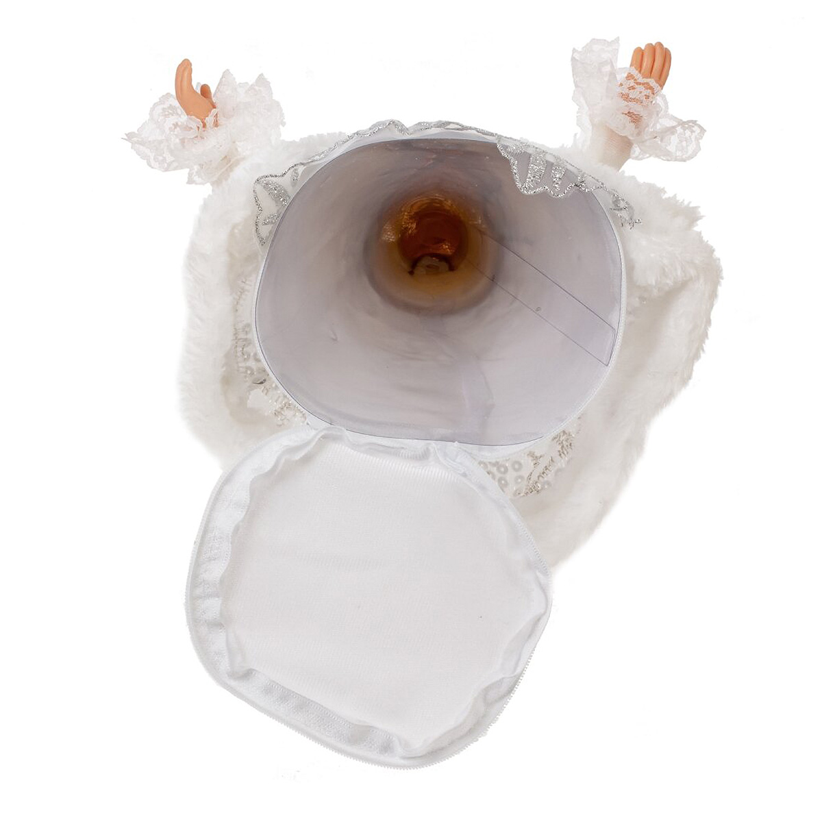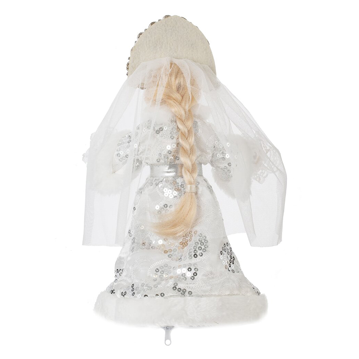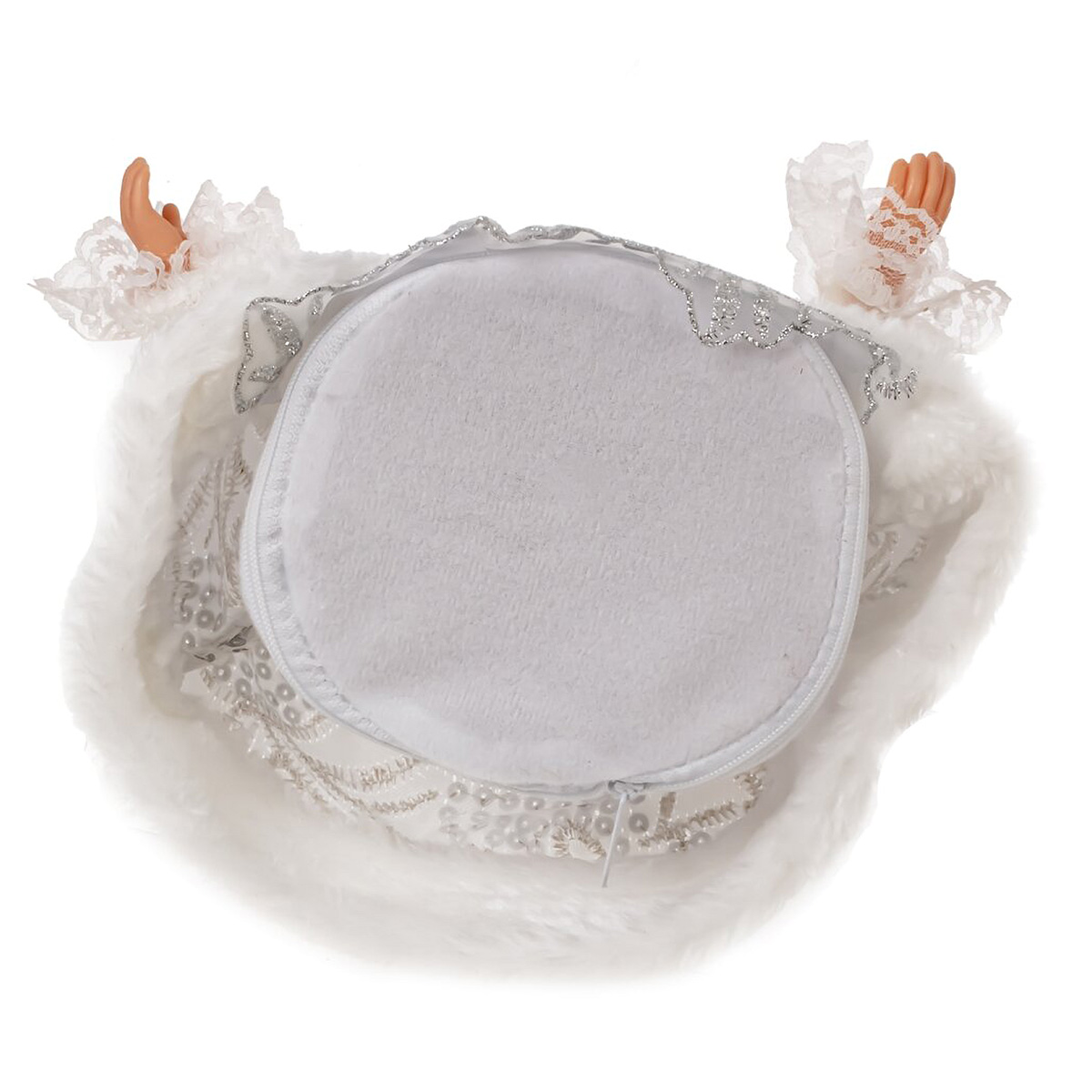 807859Снегурочка, с ёмкостью для конфет, L19 W13 H35 смСнегурочка с ёмкостью для конфет — это невероятно красивая декоративная кукла высотой 35 см. Её изящное лицо и кисти рук выполнены из полимерных материалов. Она облачена в роскошный белый наряд с меховой отделкой, украшенной серебристыми деталями. На голове Снегурочки кокошник с фатой, а длинная светлая коса добавляет её образу очарования. Под платьем находится ёмкость для конфет, что делает эту куклу прекрасным подарком для маленьких и больших любителей сладостей.