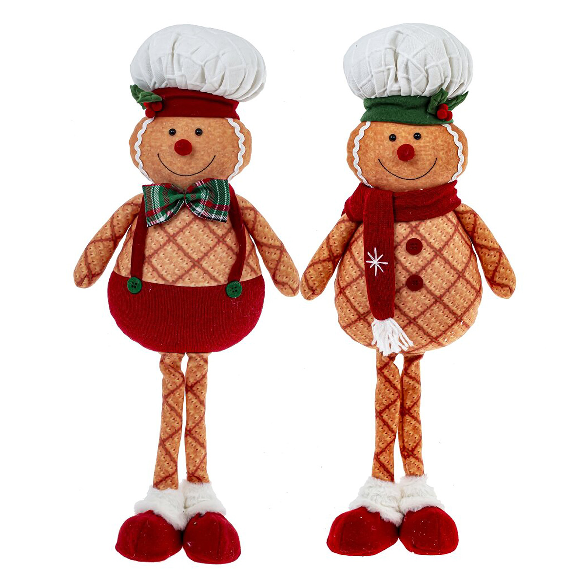 808622Игрушка набивная "Мальчик/Девочка", L20 W12 H56 см, 2в.Интерьерная новогодняя игрушка представляет собой мягкую игрушку на длинных ножках, напоминающую пряничного человечка. В комплекте представлено два варианта: один - мальчик с красными туфлями, галстуком-бабочкой и красными шортами с подтяжками, а другой - девочка с красными туфлями и красным шарфом с белыми узорами. Оба пряничных человечка носят белые поварские шапочки, добавляя к образу элемент кулинарной тематики. Эта миловидная игрушка станет прекрасным украшением вашего дома, создавая уют и праздничную атмосферу. Единица продажи - одна игрушка. Без возможности выбора дизайна при заказе через сайт.