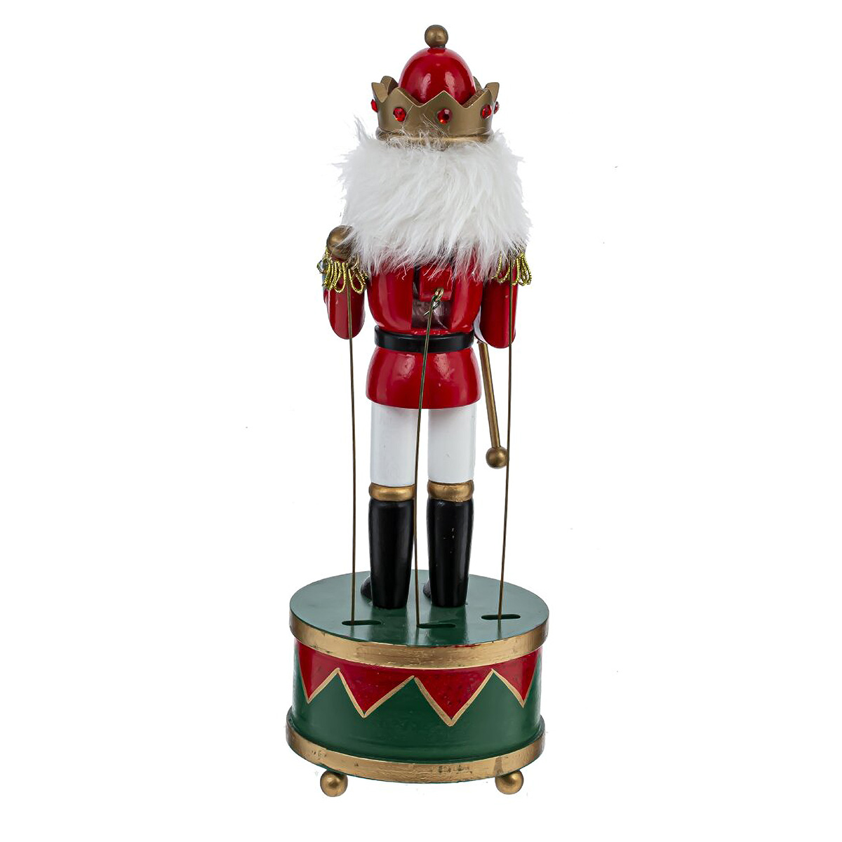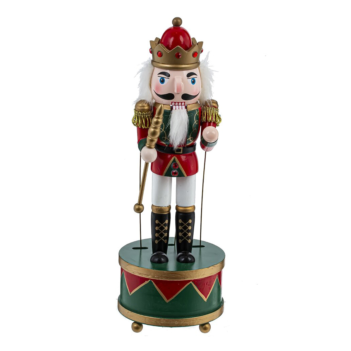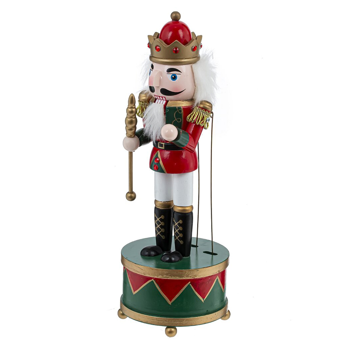 811032Фигурка декоративная "Щелкунчик" с музыкой и движением, L10,5 W10,5 H30,5 смДекоративный деревянный Щелкунчик с музыкой на заводном ключе и функцией движения. Стоит на деревянной подставке в форме барабана. При повороте ключа Щелкунчик начинает двигать руками и открывать-закрывать рот под мелодию из одноименного балета. Этот очаровательный щелкунчик станет отличным украшением для вашего дома и принесет в него праздничное настроение и волшебную атмосферу сказки.