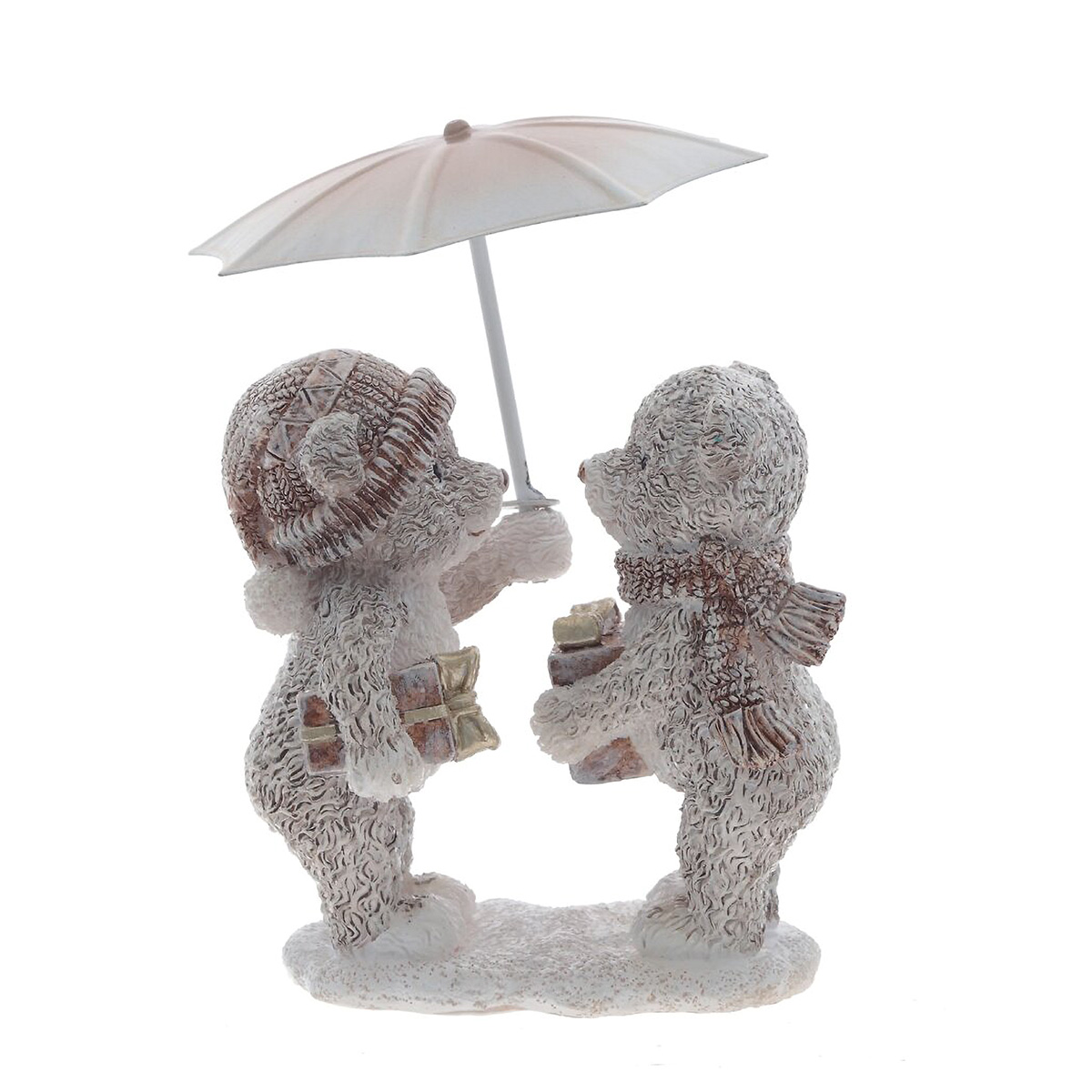 811108Фигурка декоративная "Мишки", L9 W9 H11 смДекоративная фигурка из полимерных материалов изображает двух забавных медвежат под светлым зонтиком. Они стоят на «снежном» основании, один в вязаной шапке, другой в шарфе, в лапках — маленькие подарки. Теплая зимняя сцена напоминает о заботе и празднике. Прочный и легкий материал тонко передает фактуру «меха», детали аккуратно окрашены в мягкие пастельные тона. Фигурка устойчива, ее удобно ставить на полку, камин, рабочий стол или в детскую. Легко ухаживать — достаточно протирать сухой салфеткой. Подойдет для новогодних композиций, фотозон, коллекций и как трогательный подарок. Создает атмосферу уюта и радости.