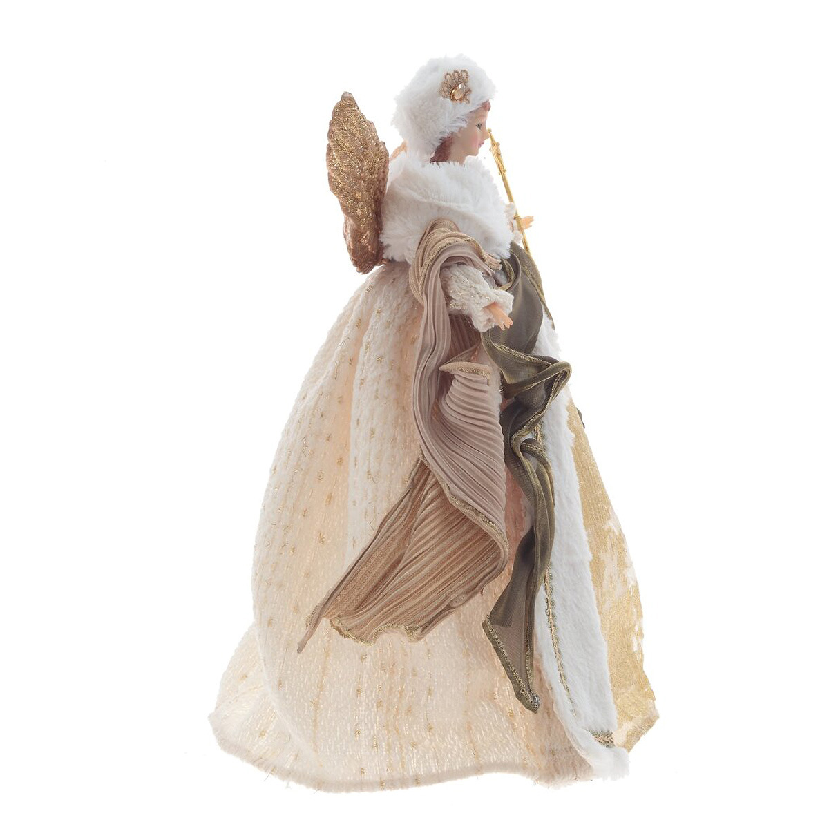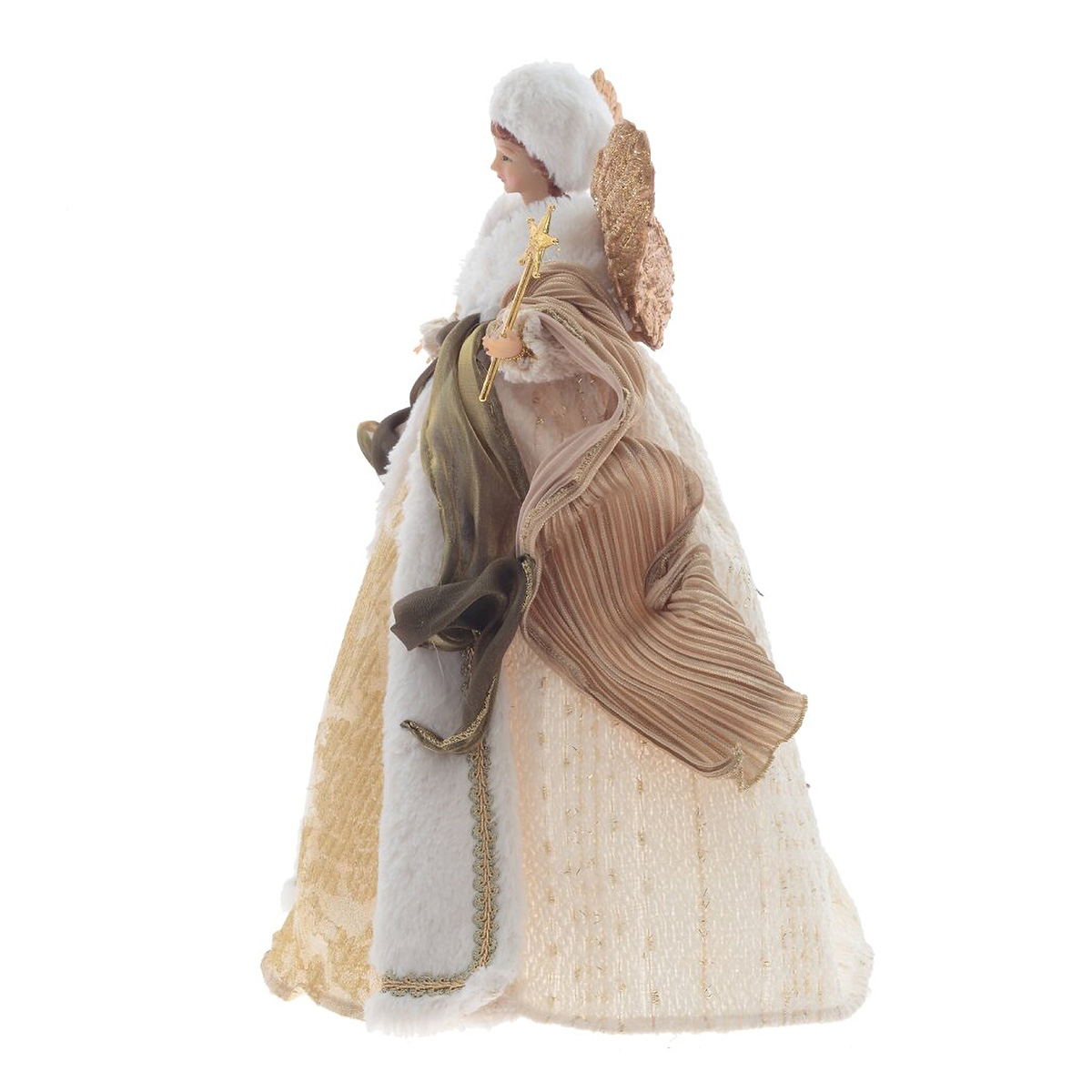 812827Изделие декоративное "Ангел", L24 W15 H40 смИнтерьерная кукла Ангел "Золотое сияние надежды", воплощение элегантности и благородства. Эта изящная фигурка, высотой 40 см, обладает внимание к мельчайшим деталям, что делает её поистине уникальной. Голова и руки куклы, изготовленные из полимерных материалов, отличаются утонченностью и детализацией. Белая меховая шапка, украшенная золотой брошью, добавляет образу торжественности и изысканности. Роскошное золотое платье с отделкой из белого меха подчеркивает статус и великолепие ангела, а струящийся шелковый шарф придает ей особую изящность. Золотые крылья ангела символизируют её небесное происхождение и способность приносить свет в жизнь людей. В руке ангела держится волшебная палочка со звездой, которая словно готова исполнить самые заветные желания. Нижняя часть куклы, выполненная из пластикового конуса, обеспечивает идеальную форму платью и устойчивость фигурки. Эта кукла станет не только украшением вашего дома, но и символом надежды и вдохновения, наполняя пространство теплом и светом.