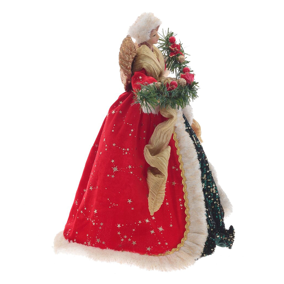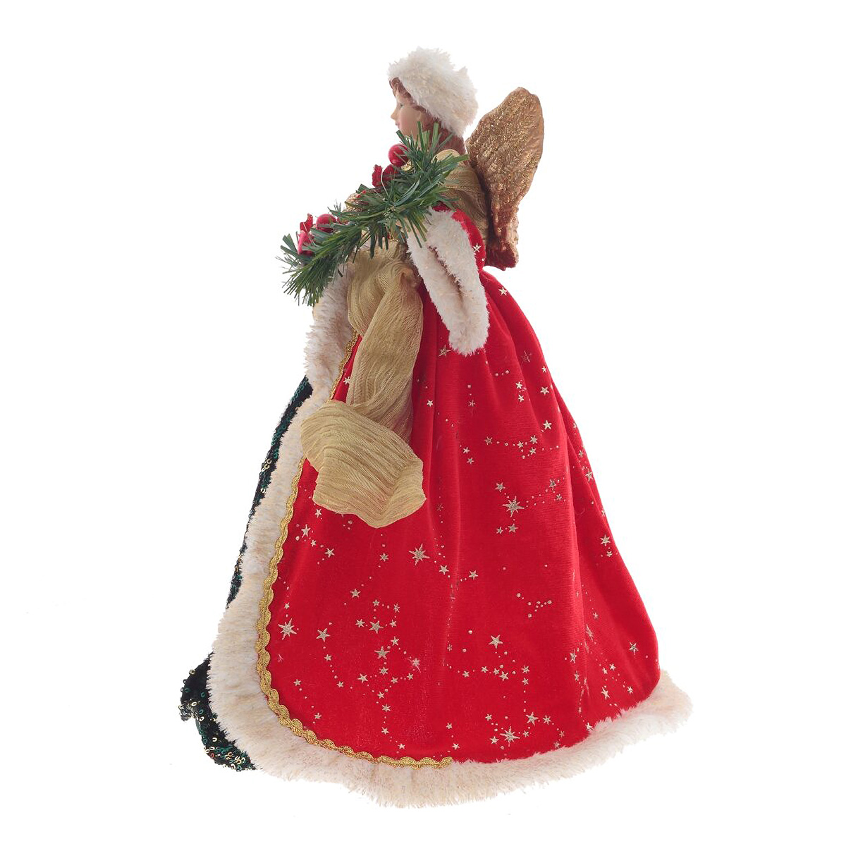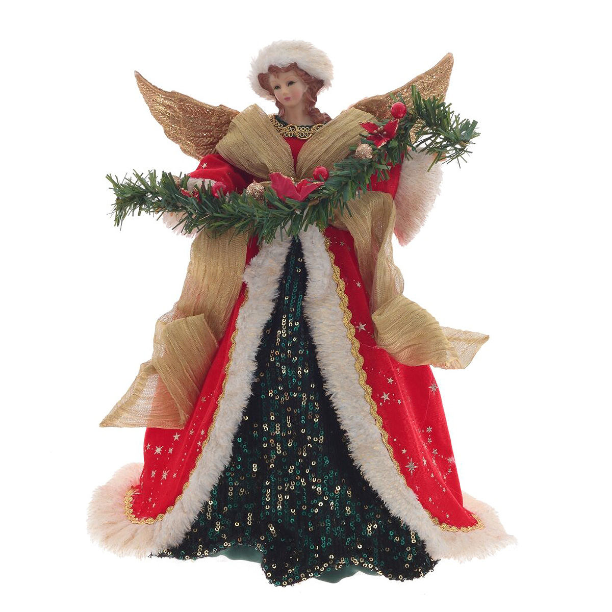 812853Изделие декоративное "Ангел", L24 W14 H40 смДекоративное изделие «Ангел» — изящный акцент для новогоднего интерьера. Фигурка выполнена в классическом праздничном стиле: пышное платье сочетает глубокий изумруд с мерцающими пайетками и алый верх с узором снежинок, отделанный мягким белым «мехом» и золотым кантом. За спиной — фактурные крылья цвета старого золота и струящиеся ленты. В руках ангел держит еловую гирлянду с красными ягодами и цветком пуансеттии, что добавляет композиции торжественности. Нежные черты лица и проработанные детали придают образу теплую, уютную атмосферу. Идеален для украшения елки, каминной полки, праздничного стола или в качестве подарка.