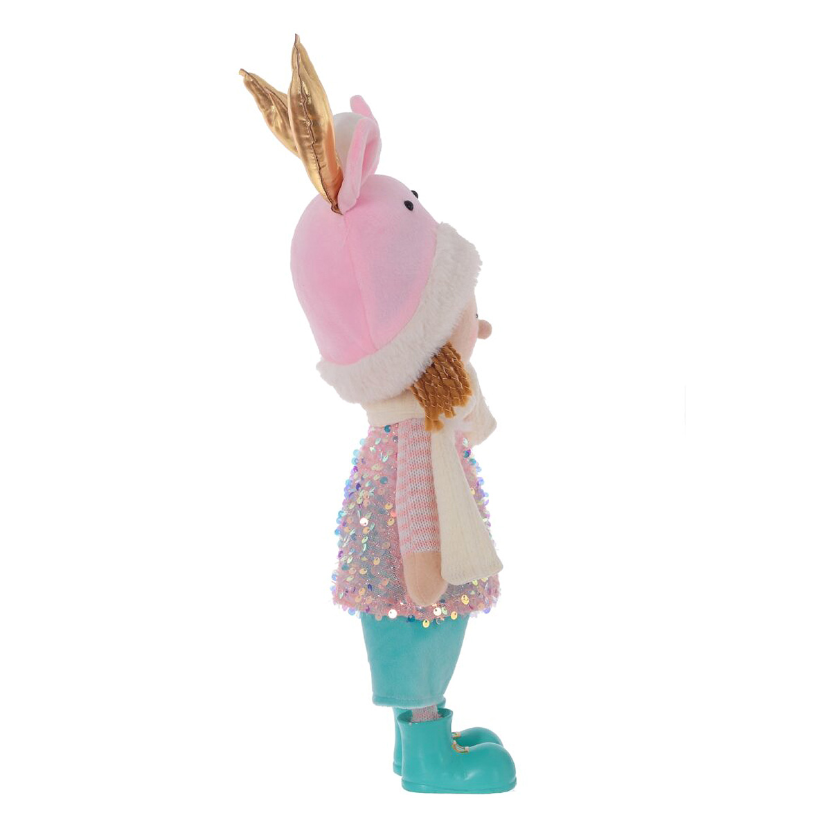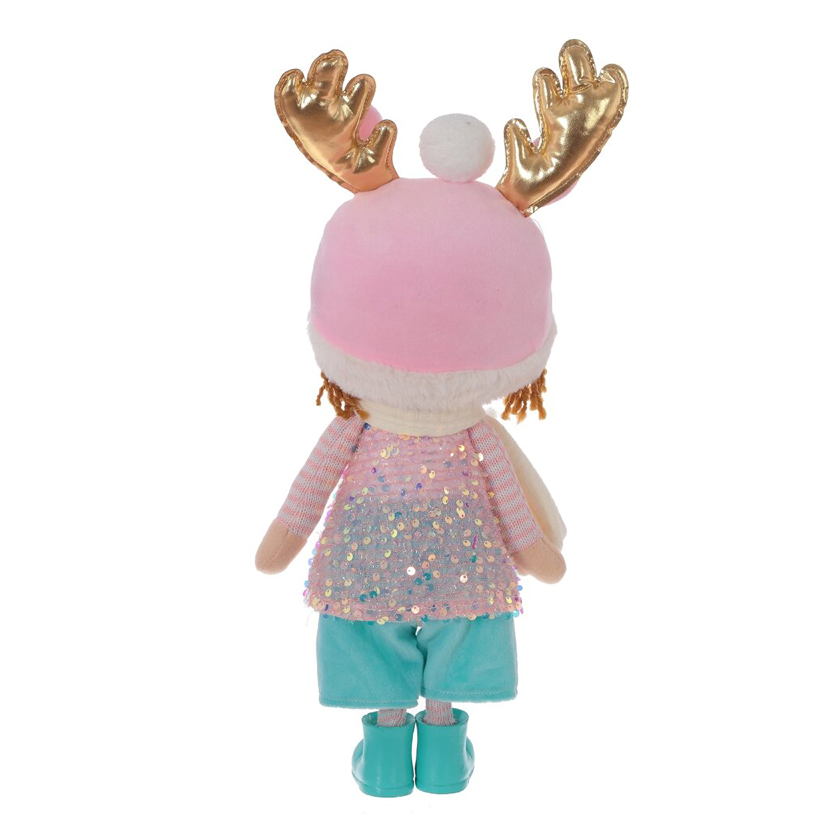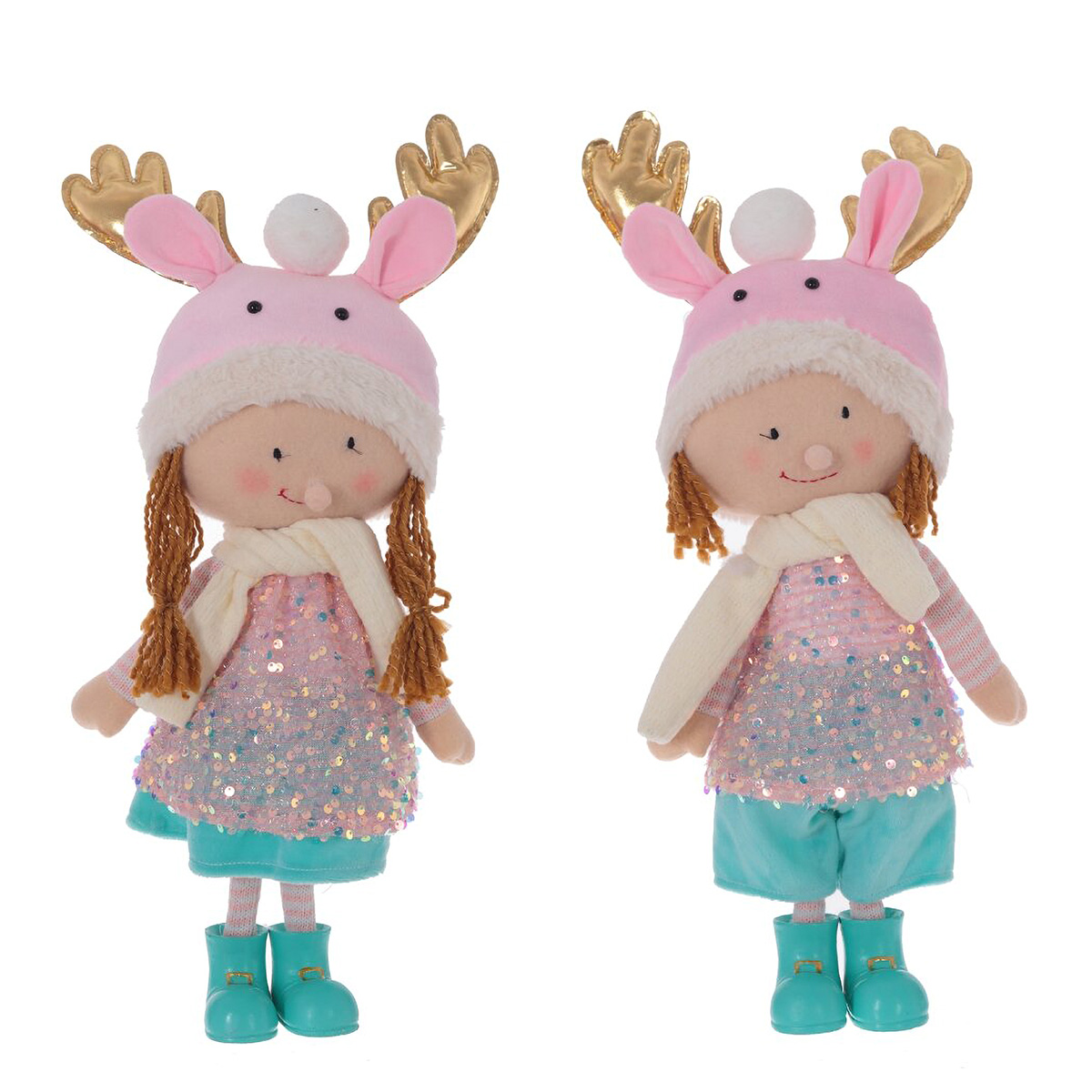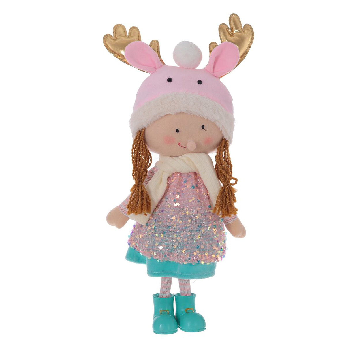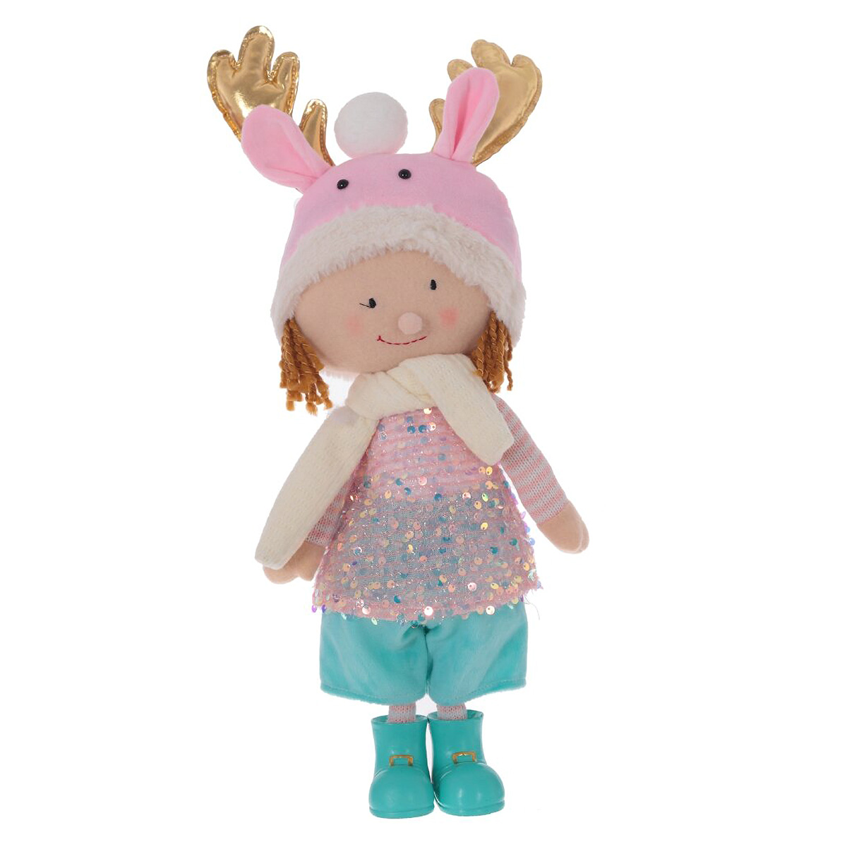 813396Игрушка набивная "Мальчик, Девочка",, L20 W10 H49/43 см, 2в.Милая набивная игрушка — мягкая куколка в зимнем наряде. Тело и одежда выполнены из текстильных материалов: приятная на ощупь ткань, вышитые глазки и улыбка, рыжие «волосы» из пряжи. На голове розовая шапочка с белым помпоном и золотистыми «рожками», дополненная уютной меховой кромкой. Куколка одета в переливающееся пайетками платьице, бирюзовые штанишки и светлый шарфик. Ноги, сапожки и декоративные детали изготовлены из полимерных материалов, хорошо держат форму. Игрушка подойдёт для игр, сказочных декораций и в качестве тёплого праздничного подарка. Представлено в двух вариантах.