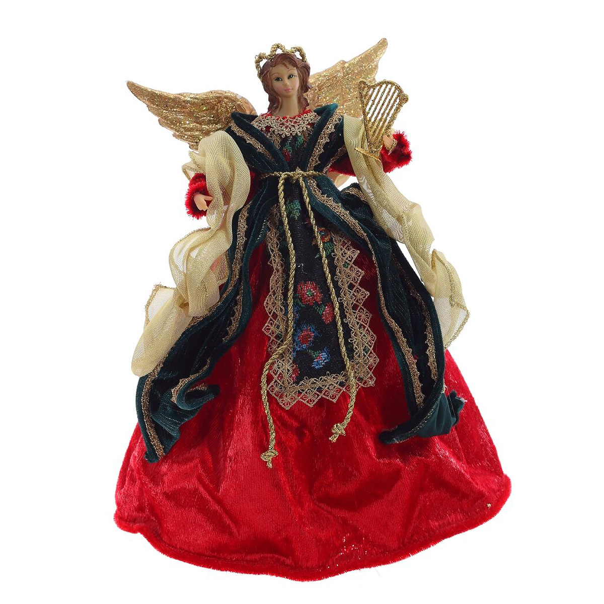 821636Декоративное изделие "Ангел", L20 W11 H30 смДекоративное изделие «Ангел» — изящная интерьерная фигурка из полимерных материалов и текстильных тканей. Нежный лик и руки выполнены из гладкого полимера, за спиной — крылья с золотистым мерцанием. Ангел одет в многослойное платье: нижняя бархатистая красная юбка, сверху темно?зеленые драпировки с золотым кантом, кружевом и цветочным орнаментом. Воздушные кремовые ленты и пояс создают торжественный силуэт. На голове миниатюрная корона, в руке — небольшая арфа. Изделие станет эффектным украшением праздничного интерьера, уместно на новогодней елке, каминной полке или в качестве памятного подарка.