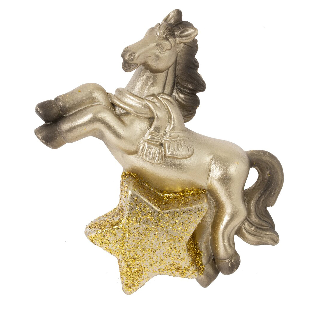 821716Магнит "Лошадка", L7 W2 H5 см, 4в.Магнит «Лошадка» — изящный новогодний талисман и символ года. Выполнен из прочных полимерных материалов с металлическими элементами. Фигурка золотой лошадки в шарфе эффектно приподнята на мерцающей золотой звезде с глиттером. Рельефная грива и копыта подчёркивают динамику и придают объём. Надёжный магнит с обратной стороны удерживает записки, чеки и фото на холодильнике или магнитной доске. Компактный сувенир для дома и офиса, создаёт праздничное настроение, приносит удачу и энергию движения. Прекрасный подарок коллегам и друзьям на Новый год. Представлено в четырех вариантах.