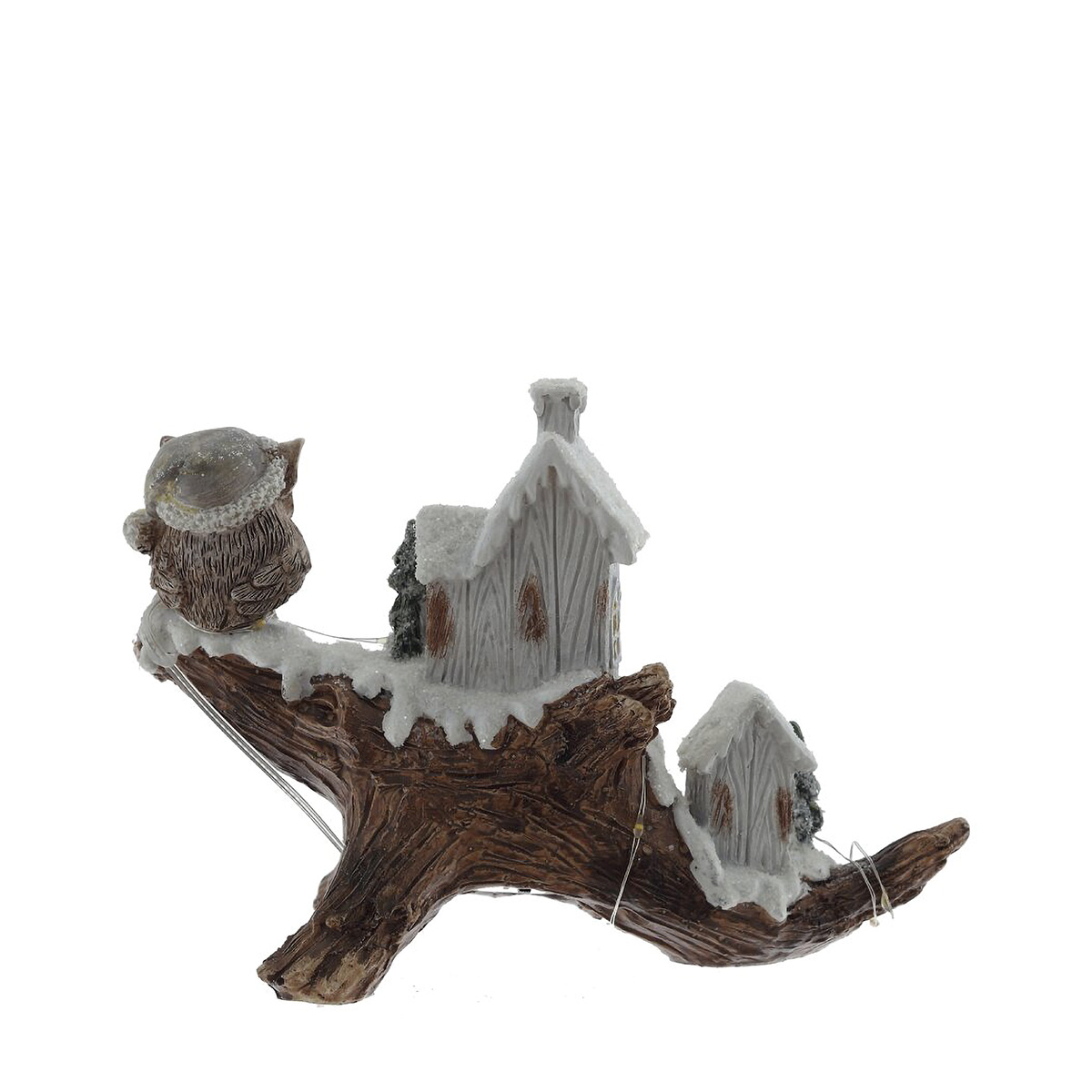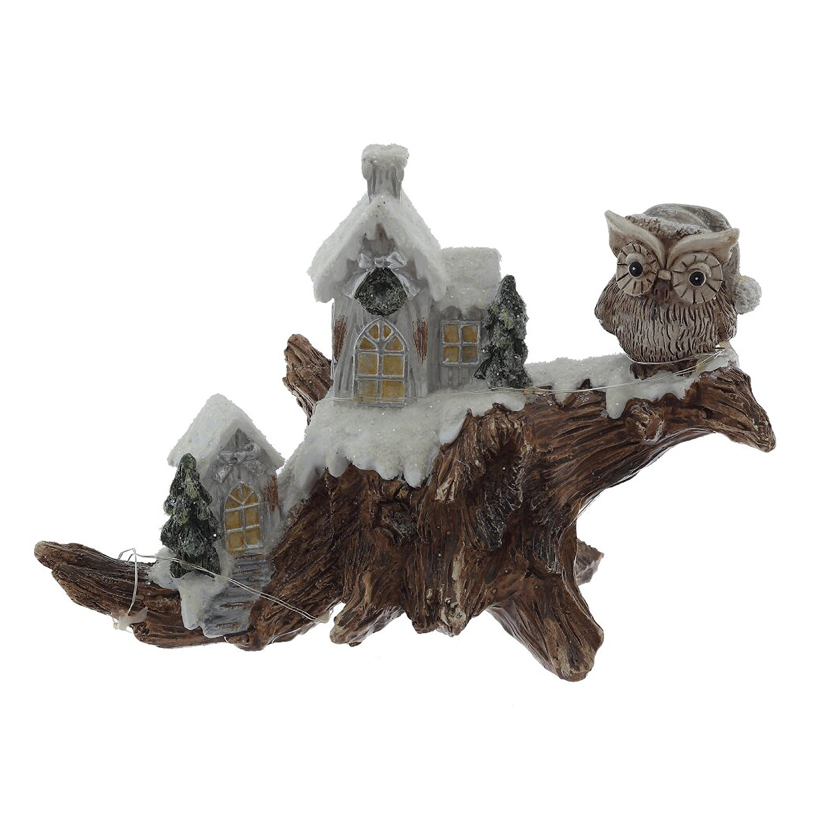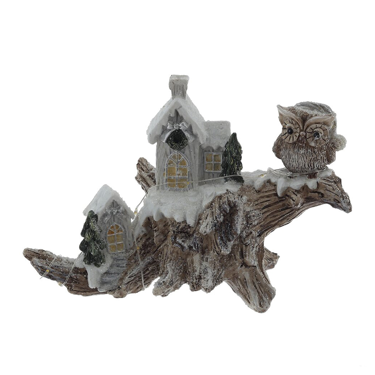 822546Фигурка декоративная "Зимняя композиция" с подсветкой [LR44x2,прилаг], L2, L20,5 W9 H14 см, 2в.Декоративная фигурка «Зимняя композиция» с подсветкой выполнена из полимерных материалов и передает атмосферу зимней сказки: на фактурной «коряге» разместились два заснеженных домика, хвойные деревца и внимательная сова. Теплые огоньки в окнах и тонкая светодиодная нить создают мягкое, уютное сияние. Изделие отлично смотрится на камине, полке или праздничном столе, подойдет для новогодней композиции и вечернего декора. Питание от 2 батареек LR44, экономичные светодиоды, аккуратная ручная роспись и искристый «снег». Прекрасная идея для подарка и создания домашнего уюта. Представлено в двух вариантах.
